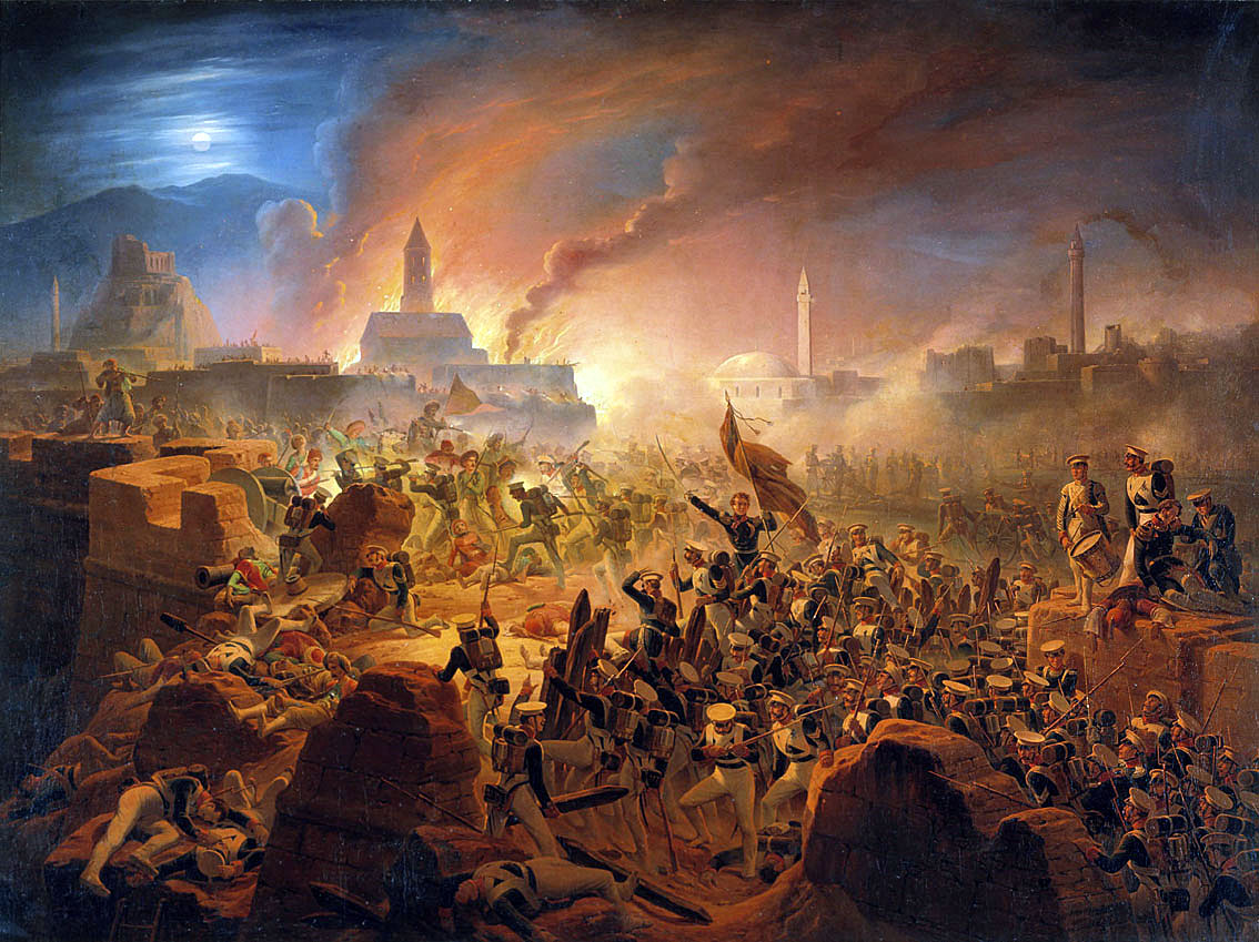 Штурм крепости Ахалцых 15 августа 1828 года. Художник: Суходольский Януарий Иванович (1797 —1875) Холст, масло 1839 Центральный военно-исторический музей артиллерии, инженерных войск и войск связи Санкт-Петербург Фрагмент. Смотреть полностью.