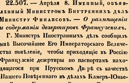 21086. 1847 год. 21 апреля (9 апреля ст.ст.). Именный, объявленный Исправляющему должность Главнаго Начальника военно-учебных заведений Военным Министром. О Кадетских Корпусах, в какие именно какого звания воспитанников помещать. <…> Исполнить согласно представлению Его Высочества, с тем, чтобы детей горцев Кавказскаго и Закавказскаго края, определять только в кадетские Корпуса здешние и Московские, дабы дать им лучшее понятие о России и о верховной власти; дворян же Царства Польскаго и всех прочих детей распределять по соображению Его Высочества