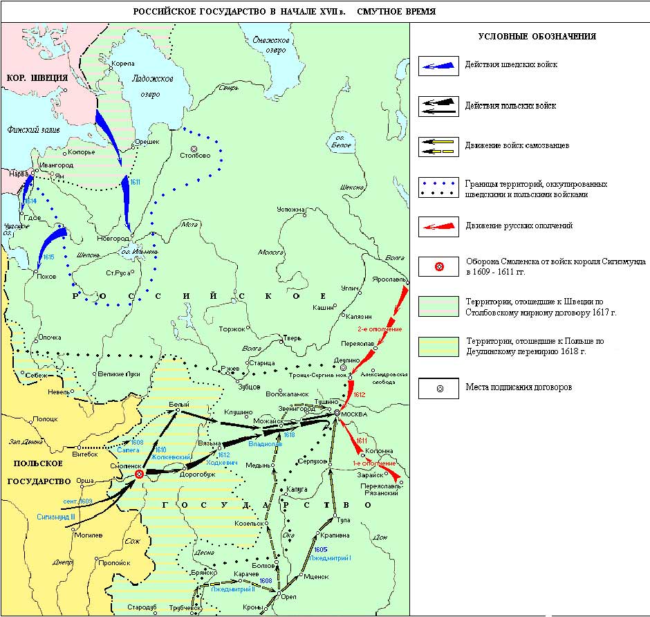 Время было уже к вечеру, когда, не доходя 5 верст до Москвы, ополчение остановилось на реке Яузе; к Арбатским воротам посланы были отряды разведать удобные места для стана; когда они возвратились, исполнив поручение, то уже наступала ночь, и Пожарский решился провести ее на том месте, где остановился. Трубецкой беспрестанно присылал звать Пожарского к себе в стан, но воевода и вся рать отвечали: "Отнюдь не бывать тому, чтоб нам стать вместе с козаками". На другой день утром, когда ополчение пододвинулось ближе к Москве, Трубецкой встретил его с своими ратными людьми и предлагал стать вместе в одном остроге, расположенном у Яузских ворот, но получил опять прежний ответ: "Отнюдь нам вместе с козаками не стаивать", и Пожарский расположился в особом остроге у Арбатских ворот; Трубецкой и козаки рассердились. Таким образом, под Москвою открылось любопытное зрелище. Под ее стенами стояли два ополчения, имевшие, по-видимому, одну цель - вытеснить врагов из столицы, а между тем резко разделенные и враждебные друг другу; старое ополчение, состоявшее преимущественно из козаков, имевшее вождем тушинского боярина, было представителем России больной, представителем народонаселения преждепогибшей южной Украйны, народонаселения с противуобщественными стремлениями; второе ополчение, находившееся под начальством воеводы, знаменитого своею верностию установленному порядку, было представителем здоровой, свежей половины России, того народонаселения с земским характером, которое в самом начале Смут выставило сопротивление их исчадиям, воровским слугам, и теперь, несмотря на всю видимую безнадежность положения, на торжество козаков по смерти Ляпунова, собрало, с большими пожертвованиями, последние силы и выставило их на очищение государства. Залог успеха теперь заключался в том, что эта здоровая часть русского народонаселения, сознав, с одной стороны, необходимость пожертвовать всем для спасения веры и отечества, с другой - сознала ясно, где источник зла, где главный враг Московского государства, и порвала связь с больною, зараженною частию. Слова Минина в Нижнем: "Похотеть нам помочь Московскому государству, то не пожалеть нам ничего" и слова ополчения под Москвою: "Отнюдь нам с козаками вместе не стаивать" - вот елова, в которых высказалось внутреннее очищение, выздоровление Московского государства; чистое отделилось от нечистого, здоровое от зараженного, и очищение государства от врагов внешних было уже легко».