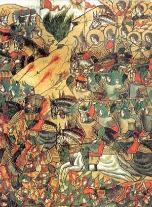 Куликовская битва. Миниатюра из Лицевого летописного свода. 16 век