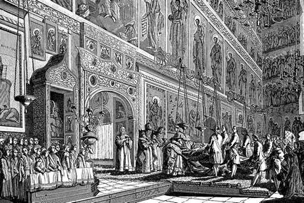 Венчание на царствие Екатерины II. 22 сентября 1762. Миропомазание. Гравюра А.Я. Колпашникова. Последняя четверть 18 века
