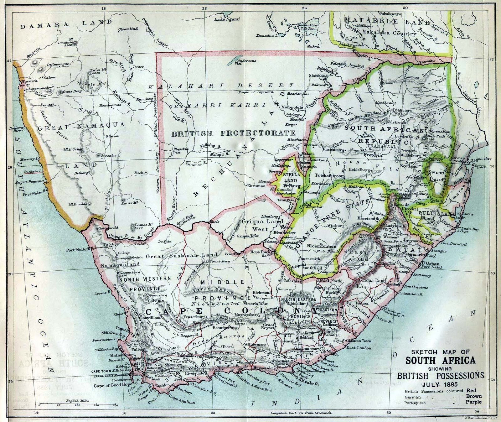 Карта Южной Африки 1885 года