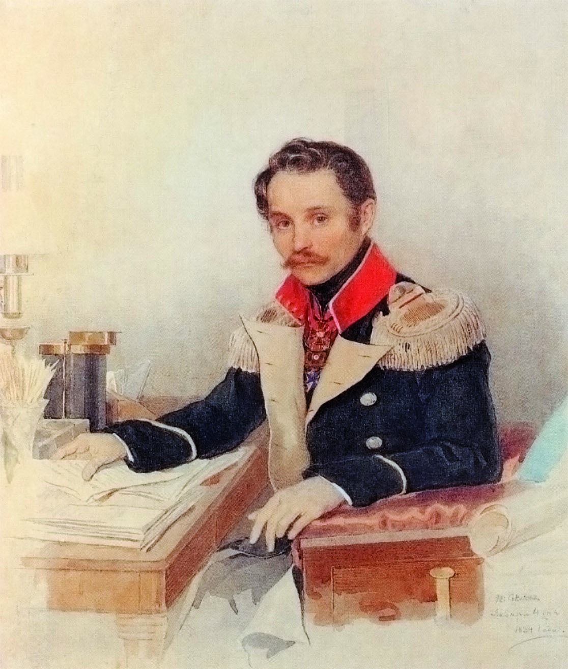 Портрет Леонтия Васильевича Дубельта (1792-1862), генерал от кавалерии, начальник тайной полиции. Художник: Соколов Петр Федорович (1791 —1848) Бумага, акварель, карандаш 1834 г Фрагмент. Смотреть полностью.