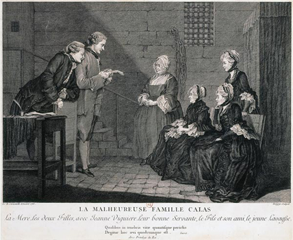 В 1762 году был казнен французский протестант Жан Калас, приговоренный к смерти по обвинению в убийстве своего сына, решившего принять католичество. Его сын, Марк-Антуан покончил с собой 13 октября 1761 года, и семья Калас была взята под подозрение без тщательного расследования обстоятельств дела, они были осуждены и властями, и обществом. Спустя три года после казни Жана Каласа, философу и юристу Вольтеру удалось добиться реабилитации осужденного.