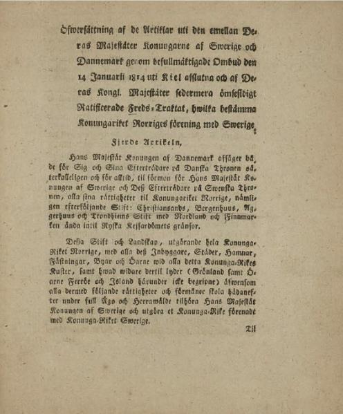 В 1814 году между Данией, Швецией и Англией были заключены Кильские мирные договоры