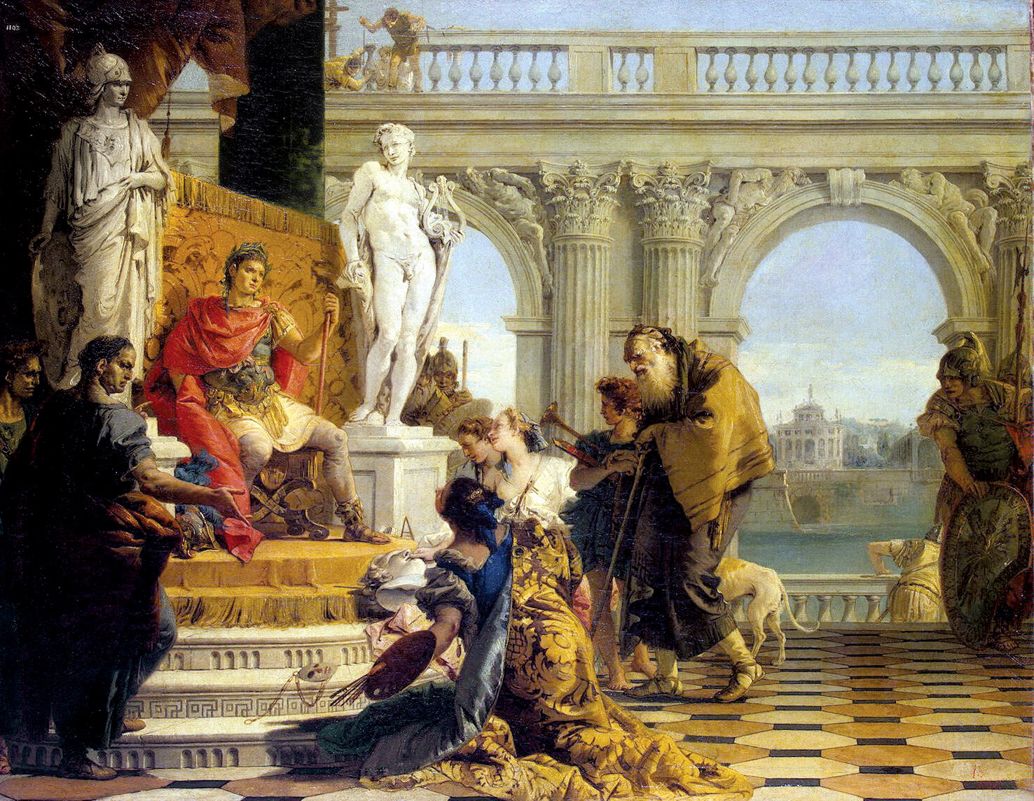 Меценат представляет императору Августу свободные искусства Художник: Тьеполо, Джованни Баттиста (1696—1770) 69,5 x 89 см Холст, масло Около 1745 Государственный Эрмитаж, Санкт-Петербург Фрагмент. Смотреть полностью.