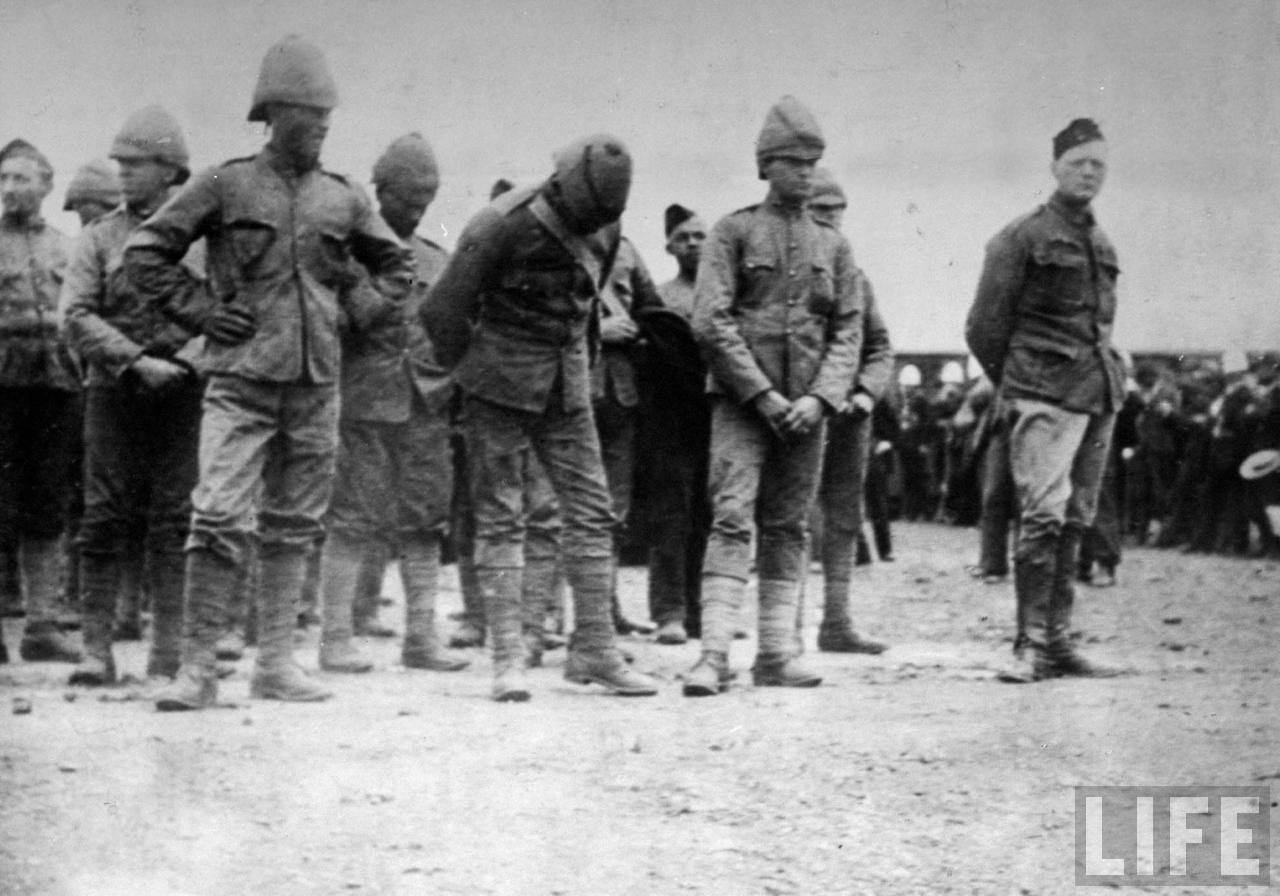 Корреспондент газеты Morning Рost Уинстон Черчилль (крайний справа) в плену у буров в 1899 г. Фотография из Национального архива Южно-Африканской республики, впервые опубликована в журнале LIFE 27 января 1941 года. Фрагмент. Смотреть полностью.