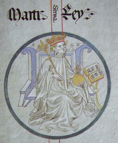 «Мартин Арагонский. Из династии Арагонских королей. Король Арагона в 1395-1410 гг. Король Сицилии в 1409--1410 гг. Сын Педро IV. Ж.: 1) с 1372 г. Мария де Луна (Умер 1406 г.); 2) с 1409 г. Маргарита дс Прадо. Умер 31 мая 1410 г.