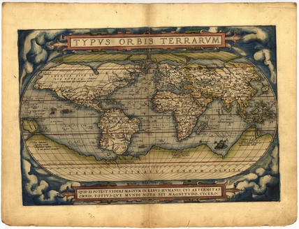 «Ортелий Абрахам - Ортелий (Ortelius, Oertel) Абрахам (4.4.1527 — 28.6.1598), фламандский картограф. В 1570 году издал в Антверпене сборник «Театр Мира», включавший 53 карты с подробными географическими текстами; в дальнейшем сборник неоднократно дополнялся и переиздавался (в 1579 году Ортелий впервые включил в него 3 исторические карты). Наряду с атласом Г. Меркатора сборник Ортелия сыграл важную роль в развитии картографии».