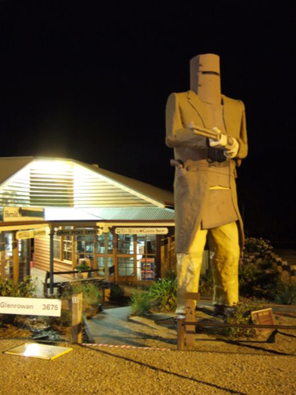 В Австралии схвачен и повешен знаменитый разбойник Эдвард «Нед» Келли, грабивший банки в бронекостюме и ставший фольклорным героем. Фотография Неда Келли перед повешением Впервые он угодил за решетку на несколько месяцев в 14 летнем возрасте за налет на соседнюю ферму. В течение следующих лет он то и дело попадался полиции и снова оказывался в тюрьме за мелкие кражи и угон скота. В конце концов он решил противостоять полиции всерьез, вооружился револьвером, подстрелил местного констебля и ударился в бега. Скрываясь от полиции, Нед Келли сколотил банду и принялся промышлять разбоем. В следующей стычке со служителями закона бандитам удалось убить уже троих полицейских. Почувствовав силу, Нед решил перейти к более серьезным делам и начал совершать налеты на банки. Чтобы защититься он придумал сделать для всех членов банды бронированные костюмы. Изготовленные из прочной стали, каждый весом почти в 44 килограмма они легко отбивали пули. Разбойники, казавшиеся теперь неузявимыми, наводили ужас на весь штат Виктория, а вокруг имени их предводителя стали слагаться легенды. Бронекостюмы банды Неда Финальный акт истории Неда Келли и его подельников был сыгран в городишке Гленрован. Здесь они узнали, что обнаружены полицией, и на подходе к городу уже целый поезд с вооруженными охотниками за их головами. Бандиты решили принять бой. Они загнали примерно 70 заложников в местную гостиницу и заняли оборону. Вскоре они были полностью окружены, и на предложение сдаться отвечали огнем. Однако полиция держала осаду цепко, намереваясь всеми силами не дать разбойникам на этот раз уйти. Когда Нед понял, что ему не вырваться, он вышел из гостиницы в своем бронекостюме с винтовкой наперевес и пошел прямо на полицейских, ведя непрерывный огонь. Однако броня не прикрывала его ноги и метким стрелкам удалось ранить его и обездвижить. Нед Келли был схвачен. Увидев такую судьбу своего главаря, его подельники, остававшиеся в гостинице, предпочли покончить с собой. Нед Келли остался в живых и после короткого суда был повешен на месте. Его подвиги, как водится, стали частью местного фольклора, и по сей день история его похождений привлекает писателей, музыкантов и кинематографистов. Фигура Неда Келли возле гостинцы в Гленроване и сегодня привлекает туристов
