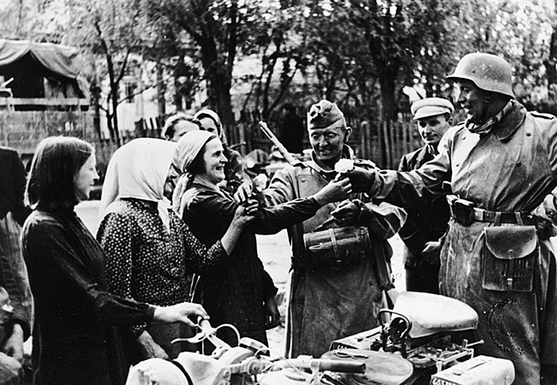 Встречали германские войска как освободителей.