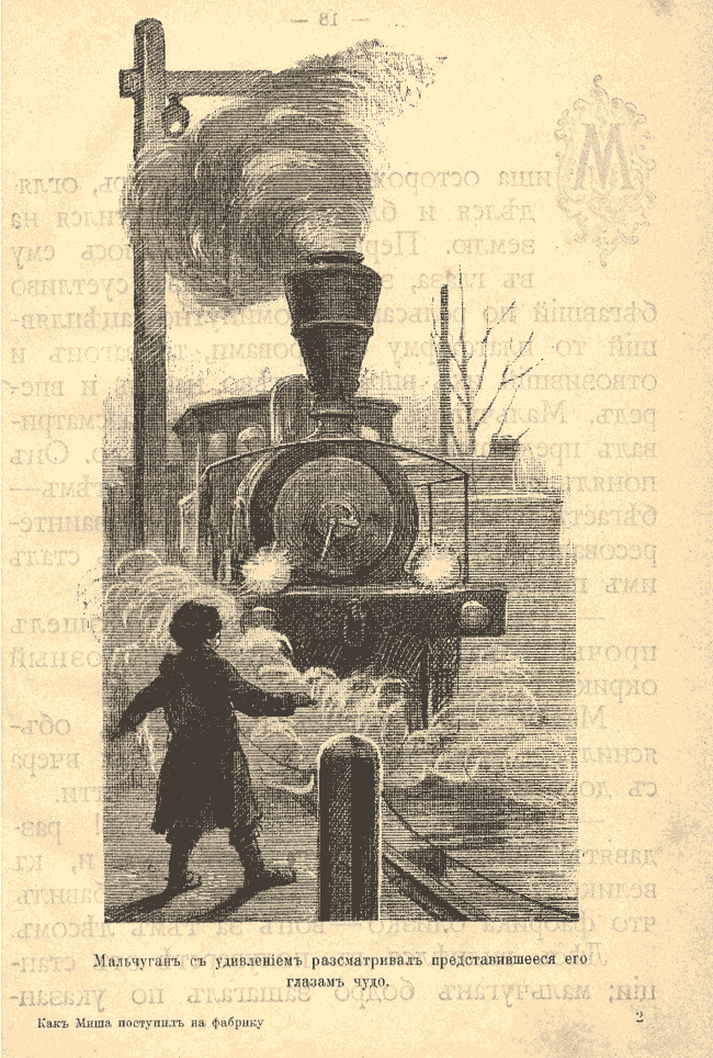 «Дяденька, где тут фабрика, – спросил Миша у сторожа. Иллюстрация в гниге