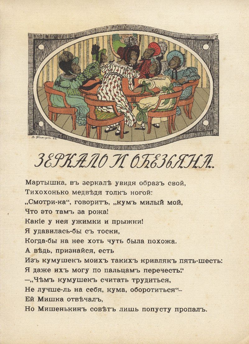Иллюстрация к басне «Зеркало и обезьяна» в книге