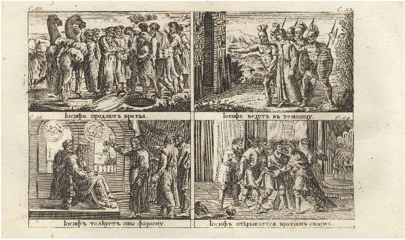 Иосифа продают братья. Иосифа ведут в темницу. Иосиф толкует сны фараону. Иосиф открывается братьям своим. Иллюстрации к книге