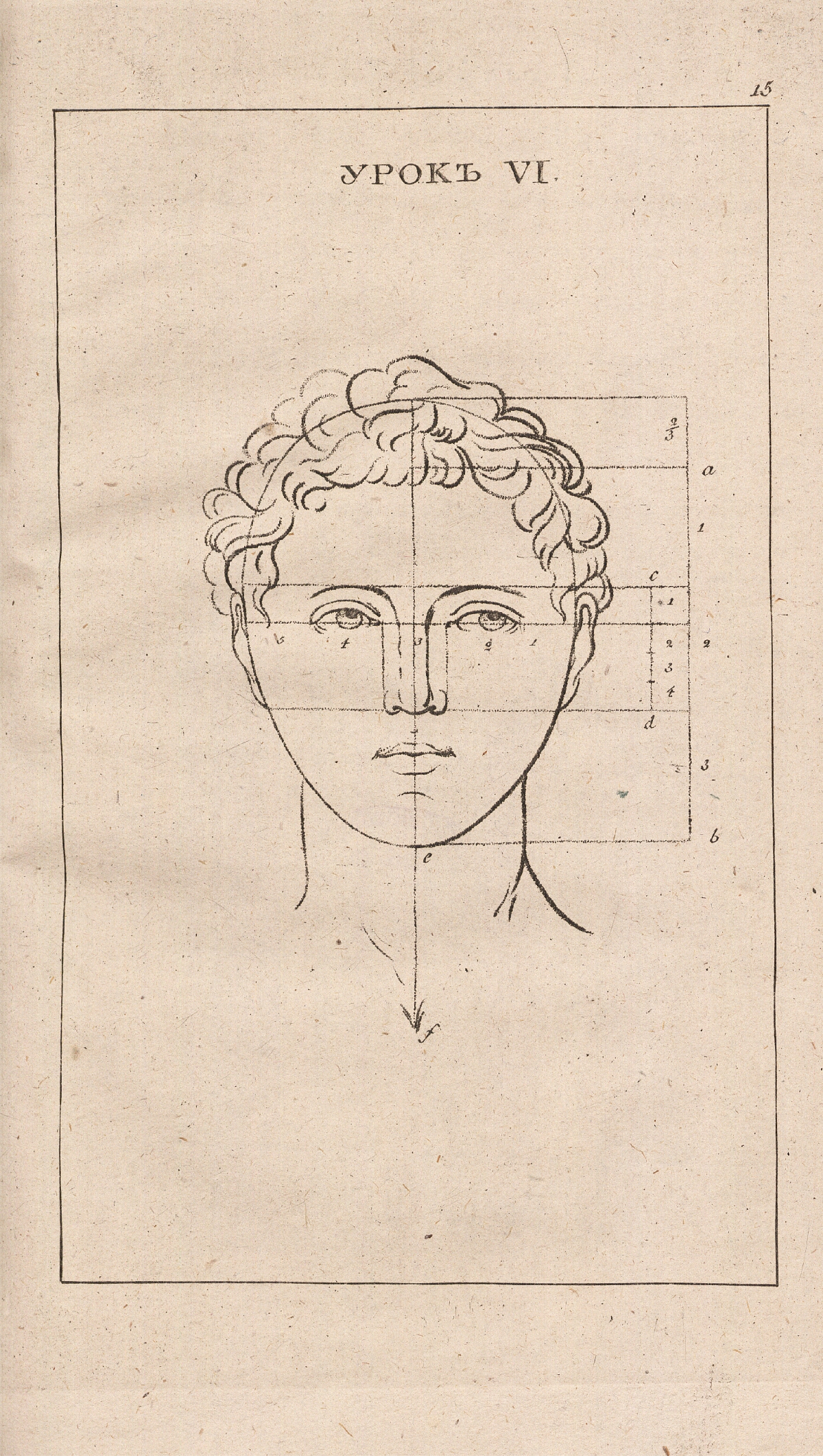 Как рисовать лицо спереди. Иллюстрация к 6-му уроку из учебника рисования XVIII века