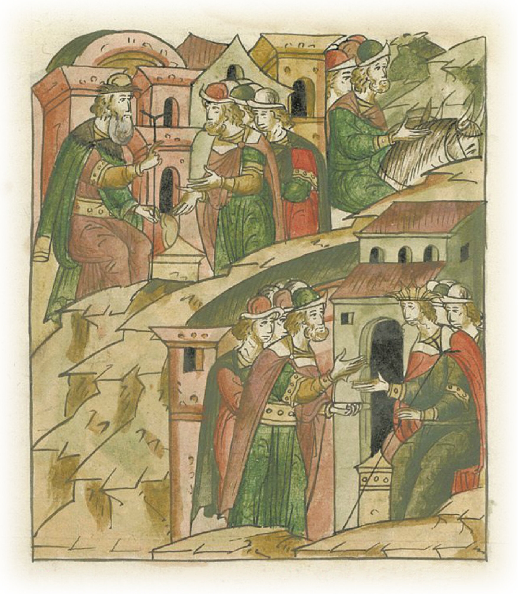 Ругодивские посадники Яким и Захар приезжают в Москву. Воеводы царя Ивана Васильевича Алексей Адашев и Иван Михайлов сообщают им, что государь пожалует их, если сдадут его воеводам помимо Ругодива Вышгород.
