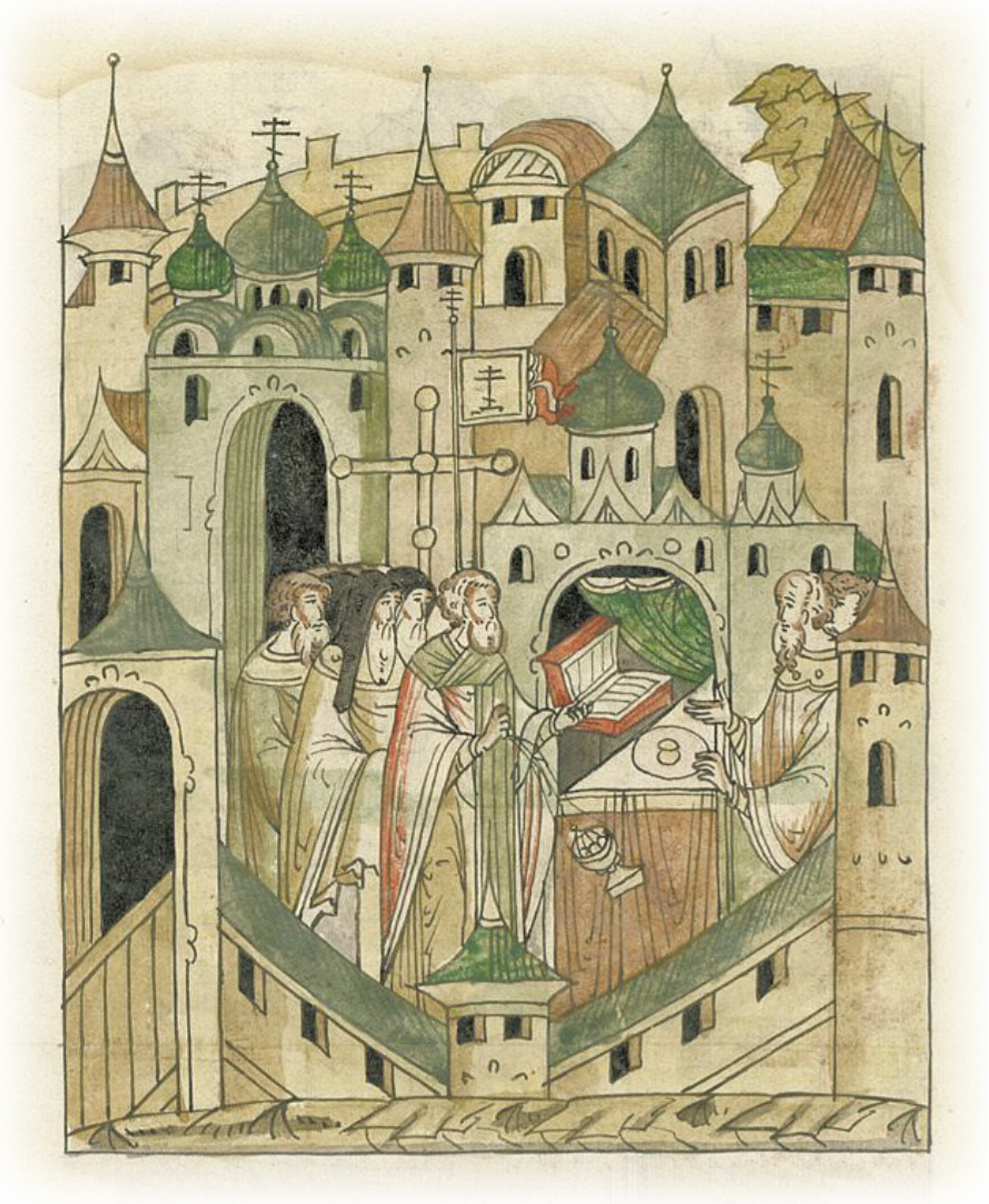 Ругодивские посадники Яким и Захар приезжают в Москву. Воеводы царя Ивана Васильевича Алексей Адашев и Иван Михайлов сообщают им, что государь пожалует их, если сдадут его воеводам помимо Ругодива Вышгород.