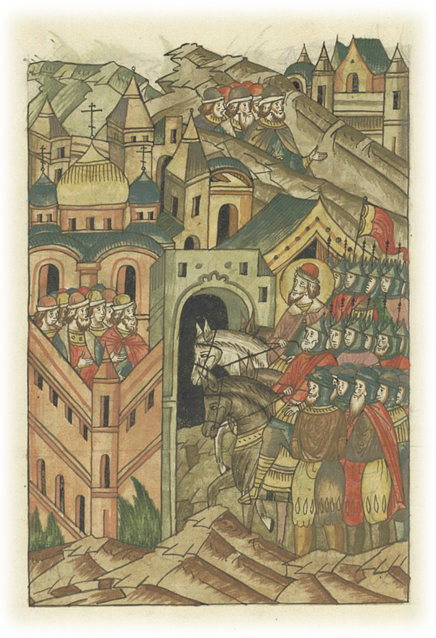 Ругодивские посадники Яким и Захар приезжают в Москву. Воеводы царя Ивана Васильевича Алексей Адашев и Иван Михайлов сообщают им, что государь пожалует их, если сдадут его воеводам помимо Ругодива Вышгород.