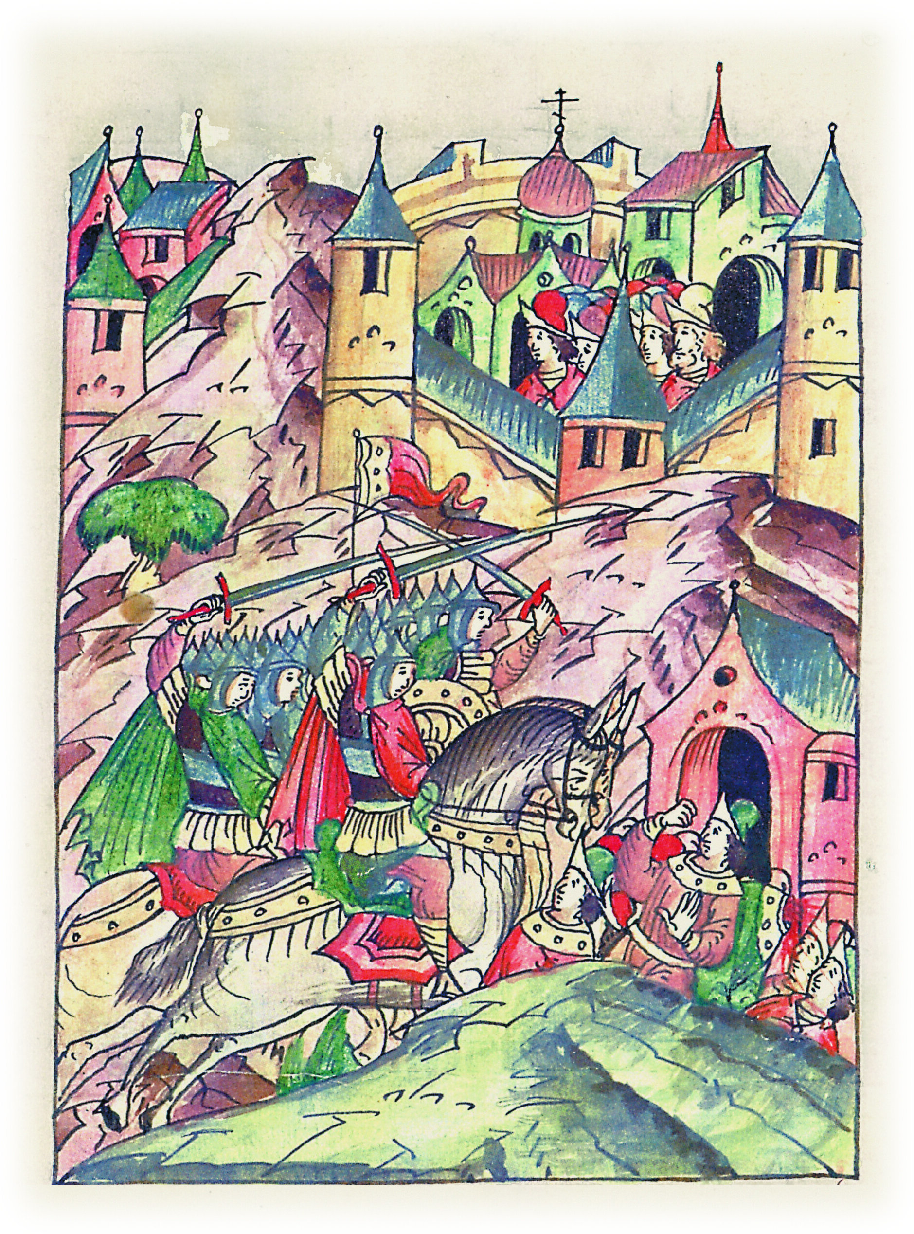 Языки говорят воеводам царя Ивана Васильевича, что магистр окопался большим рвом вокруг города Рындола, бьет из пушек и пищалей и приступает к Рындолу.