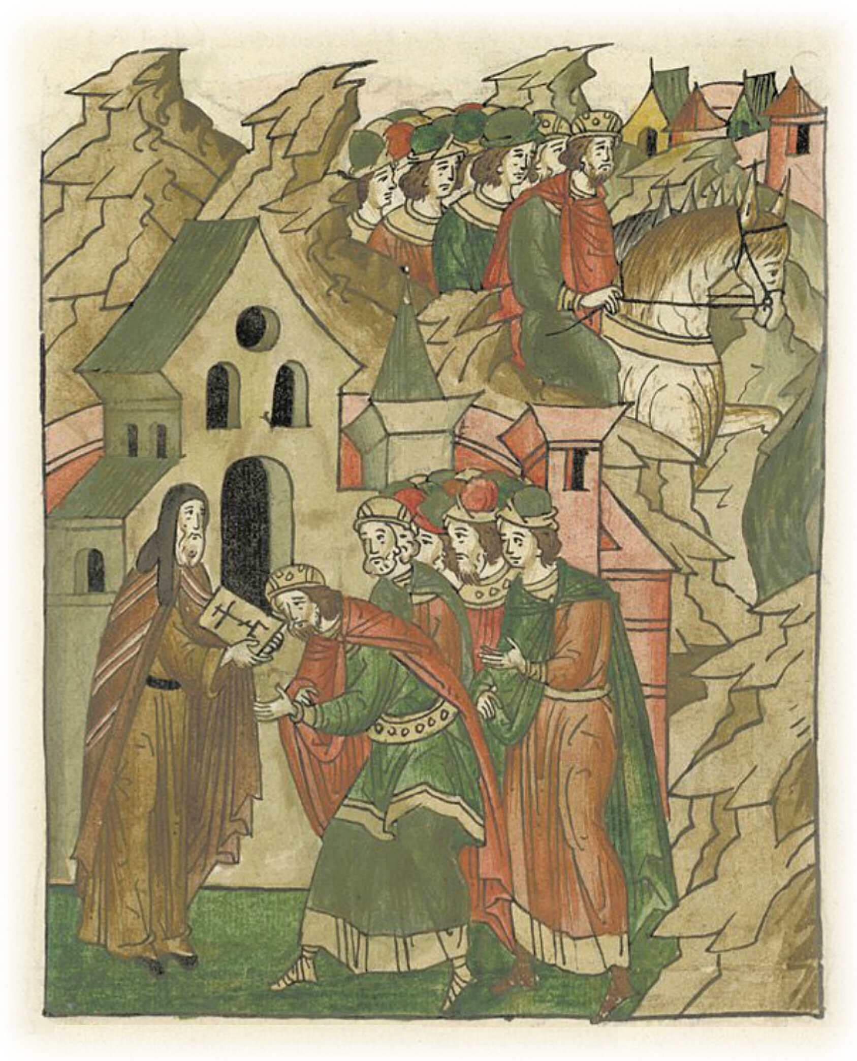 и, поцеловав из руки епископа Черниговского святой и животворящий крест, пошли с миром и пришли в Москву.
