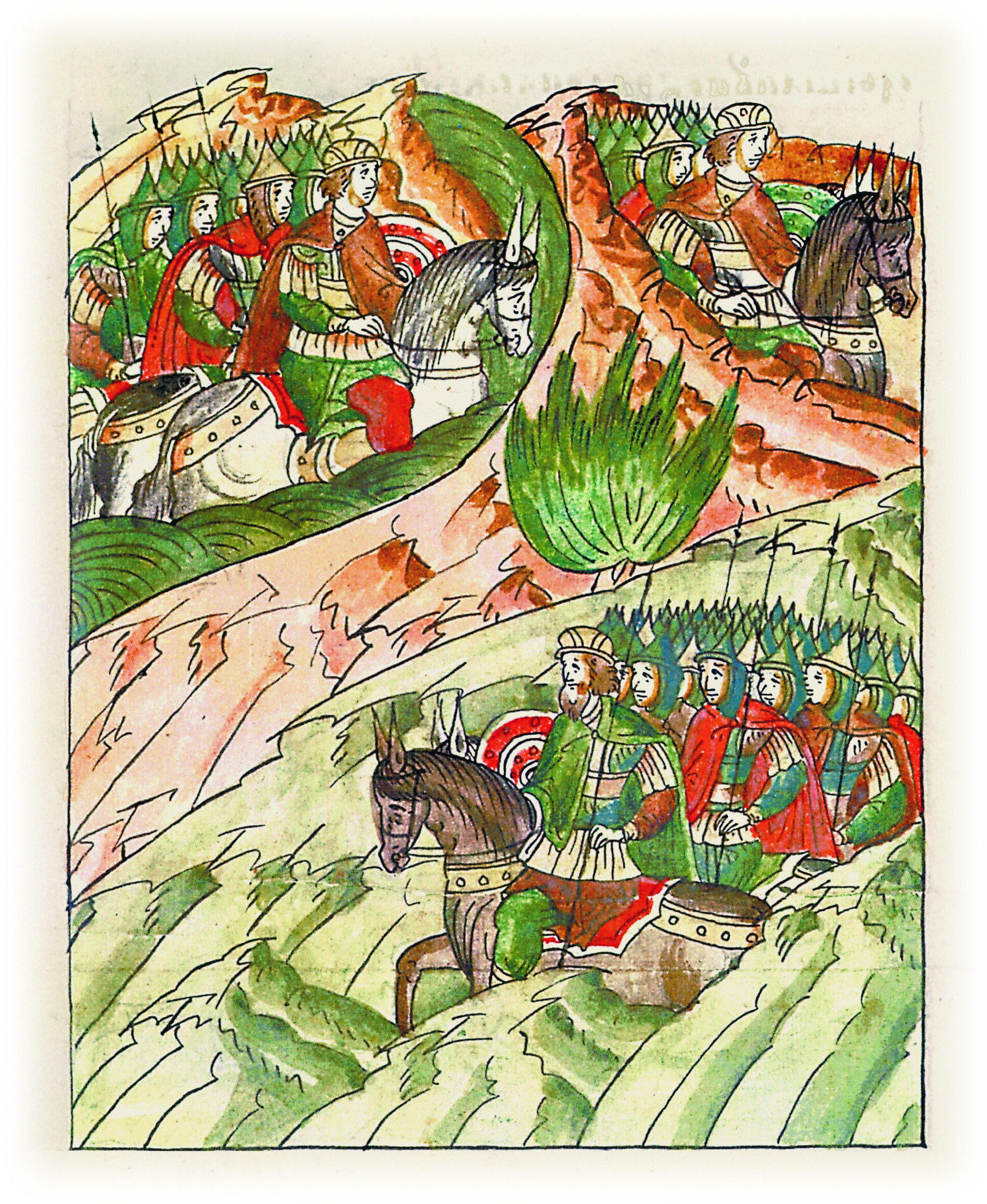 Воеводы царя Ивана Васильевича, разделившись, идут в погоню за царем Емгурчеем.