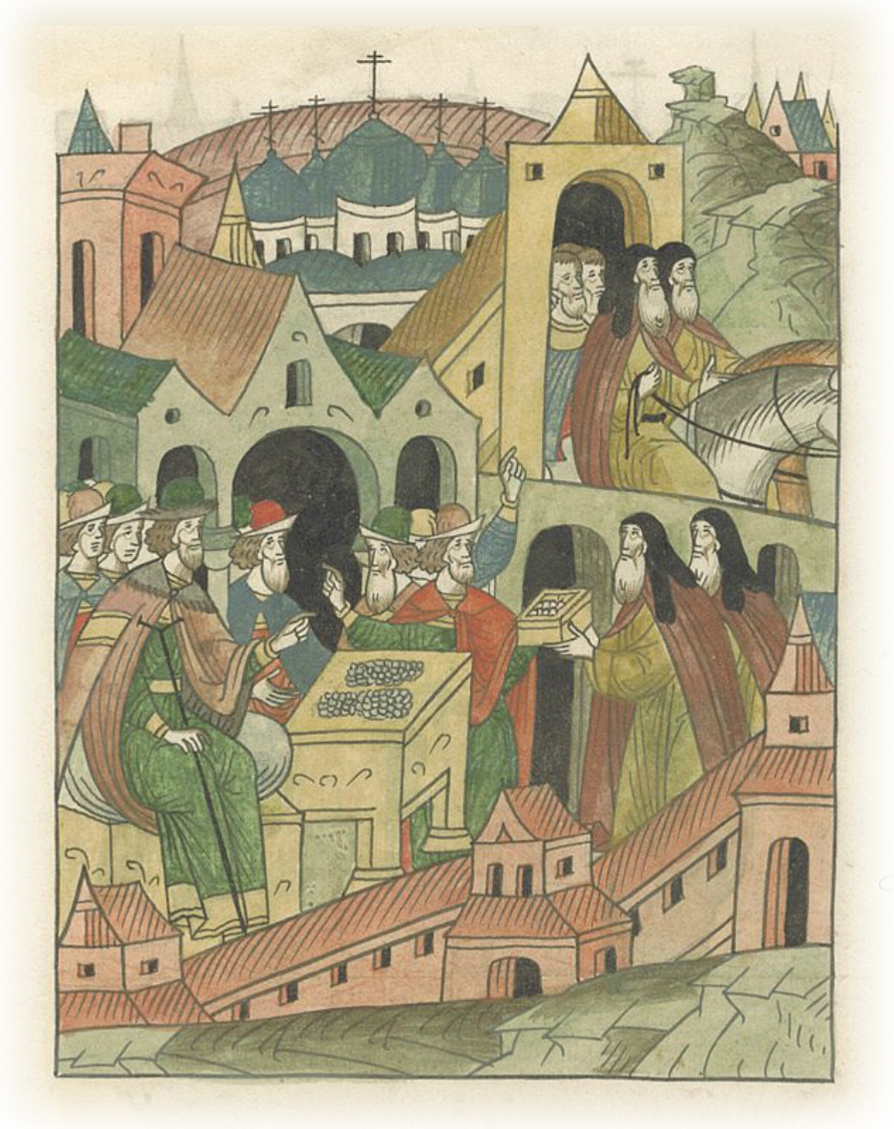 Великий князь Василий Иванович дает милостыню старцам со Святой горы из Пантелеймонова монастыря.