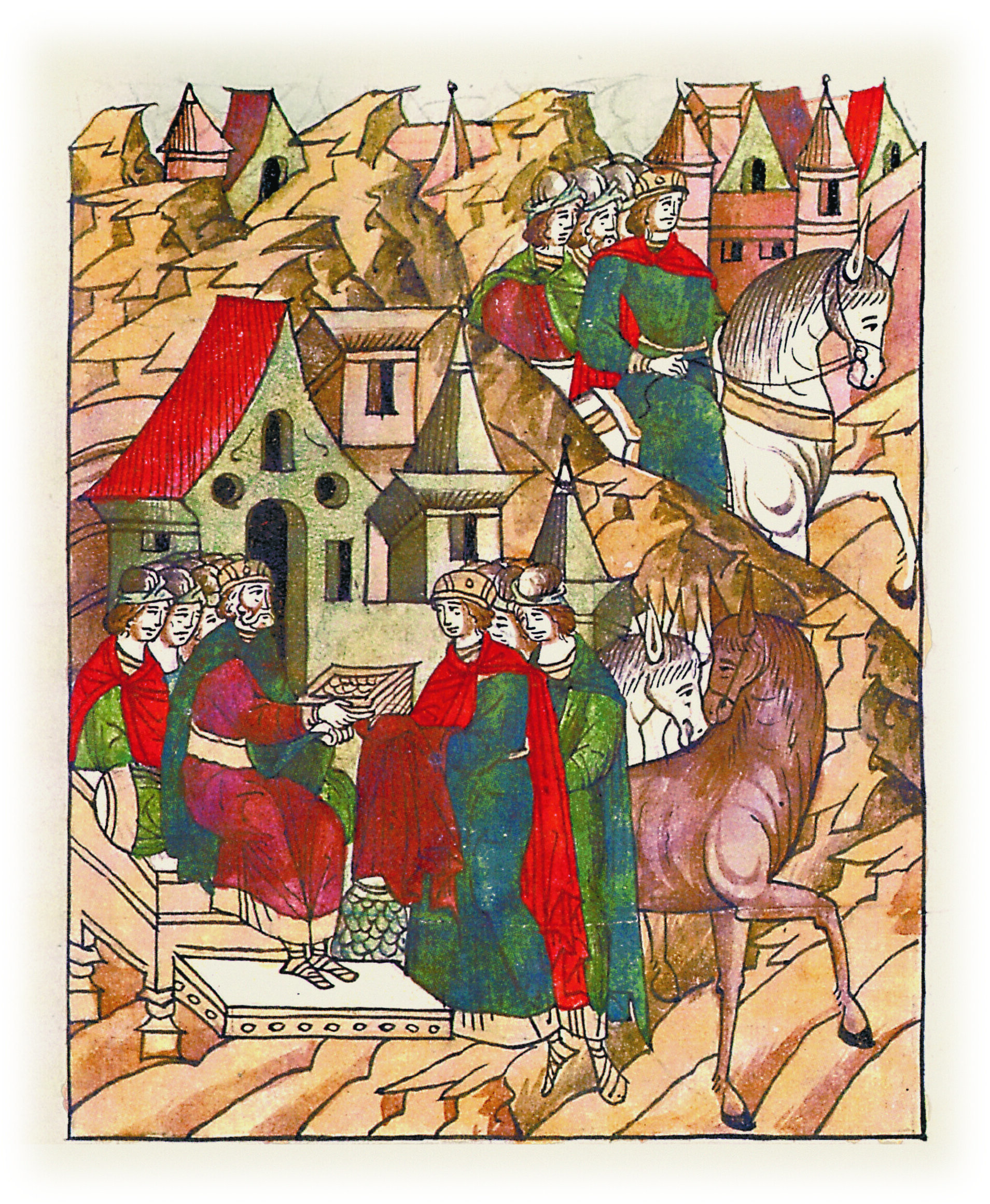 Дал же ему Ярополк и множество даров: жемчуг, золото, серебро, одежды, коней, доспехи и чествовал его много, и отпустил его в прежденазванные города его.