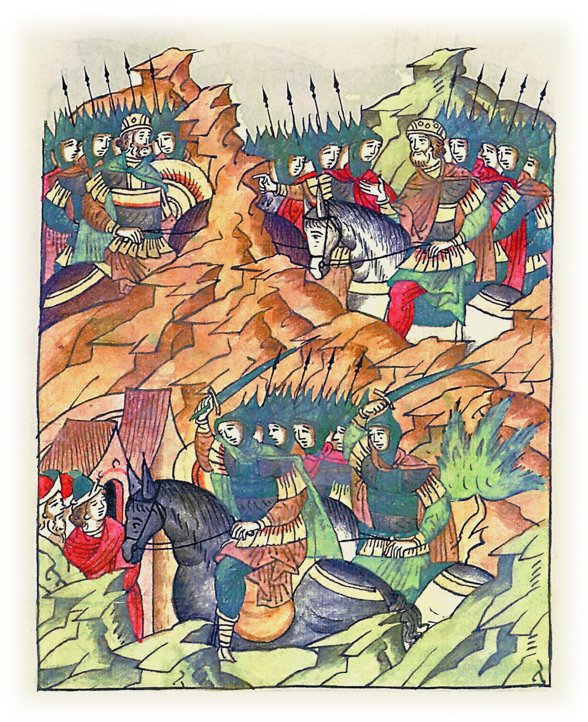 Воеводы царя Ивана Васильевича, разделившись, идут в погоню за царем Емгурчеем.