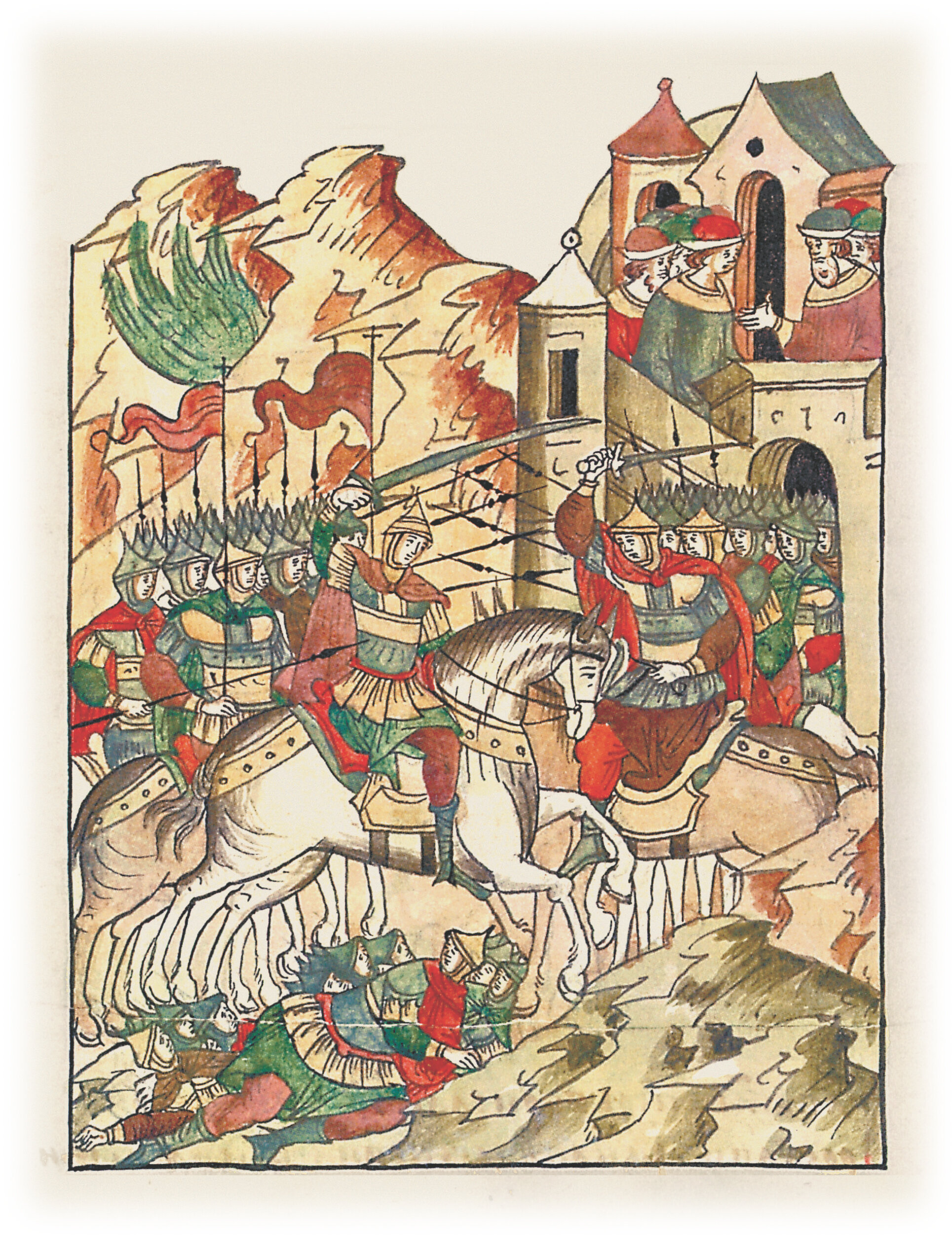 Полки же исходили из города Киева и много ратных убивали, и уже три недели стояли они около города с бесчисленным воинством, и многа зла было: это же все было из-за злых людей и из-за окаянных бояр.