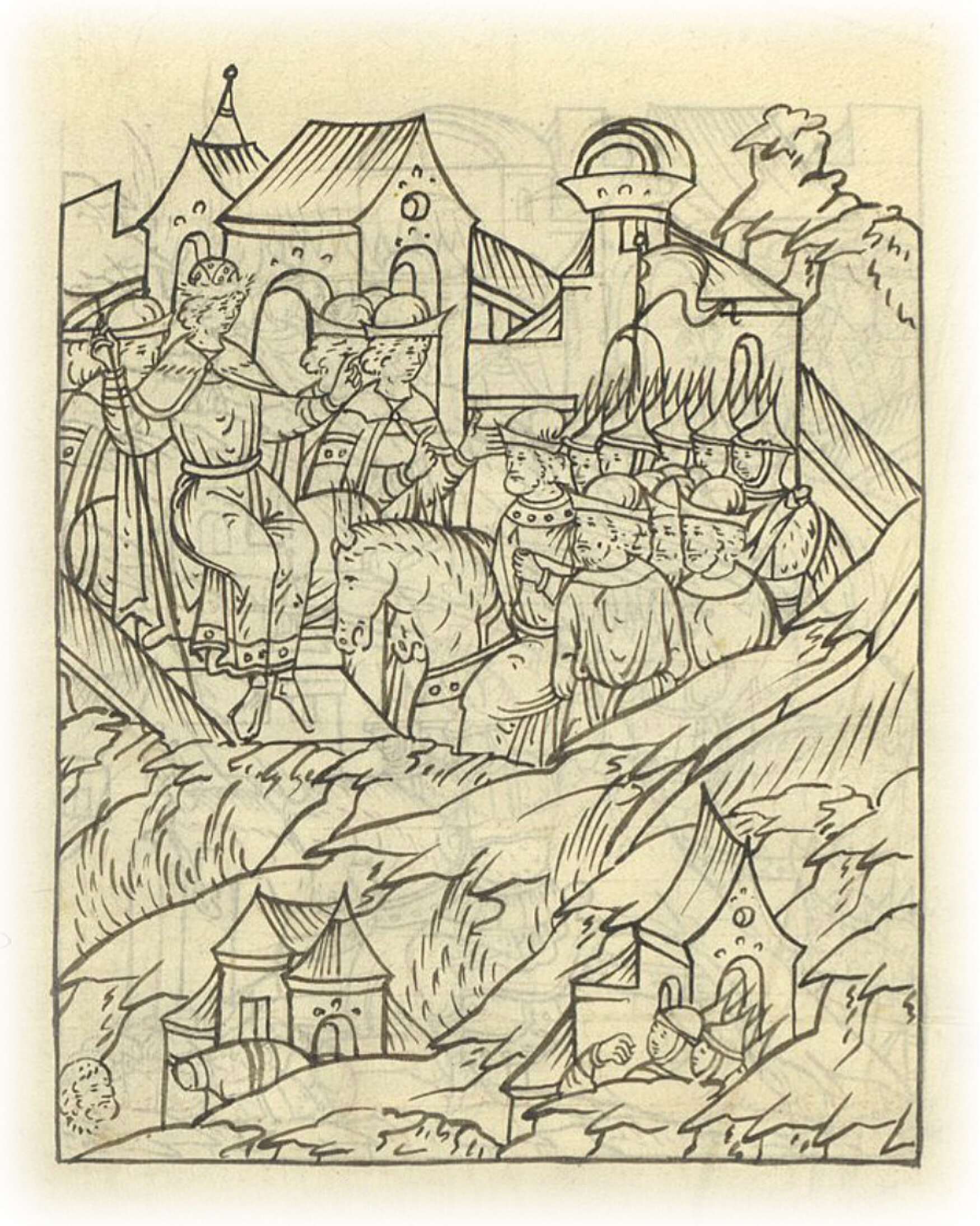 Языки говорят воеводам царя Ивана Васильевича, что магистр окопался большим рвом вокруг города Рындола, бьет из пушек и пищалей и приступает к Рындолу.