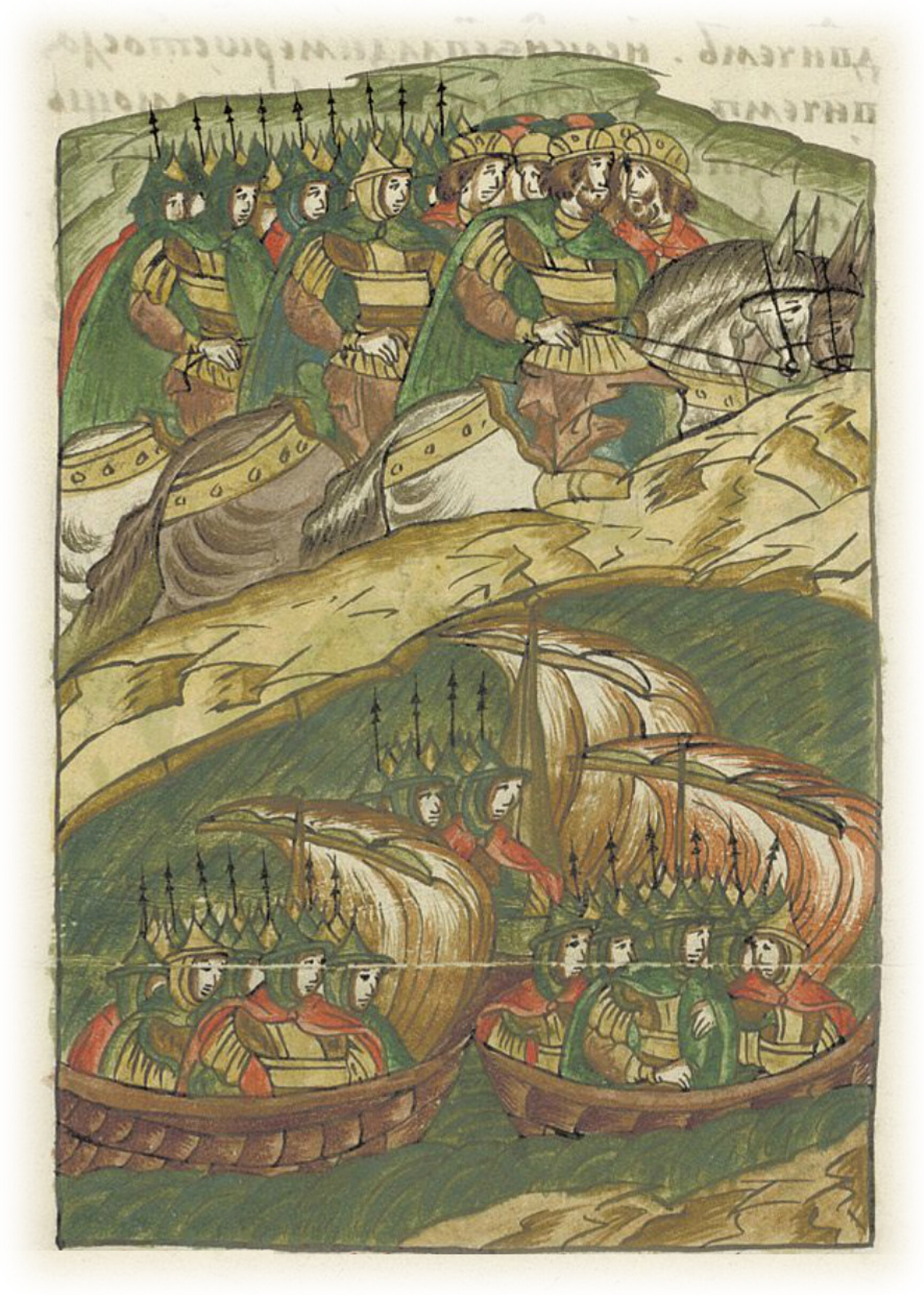 В 6692 (1184) году. Пошел великий князь Владимирский Всеволод Юрьевич войной на болгар вместе со своим племянником, князем Изяславом Глебовичем, внуком Юрия Долгорукого, правнуком Владимира Мономаха, и с князем Мстиславом Давидовичем, и с князем Владимиром Святославичем; позвал к себе на помощь рязанских и муромских князей: князя Рязанского Романа Глебовича и его братьев – князя Игоря, князя Всеволода и князя Владимира Муромского, а шли они по воде на судах и по берегу на конях,