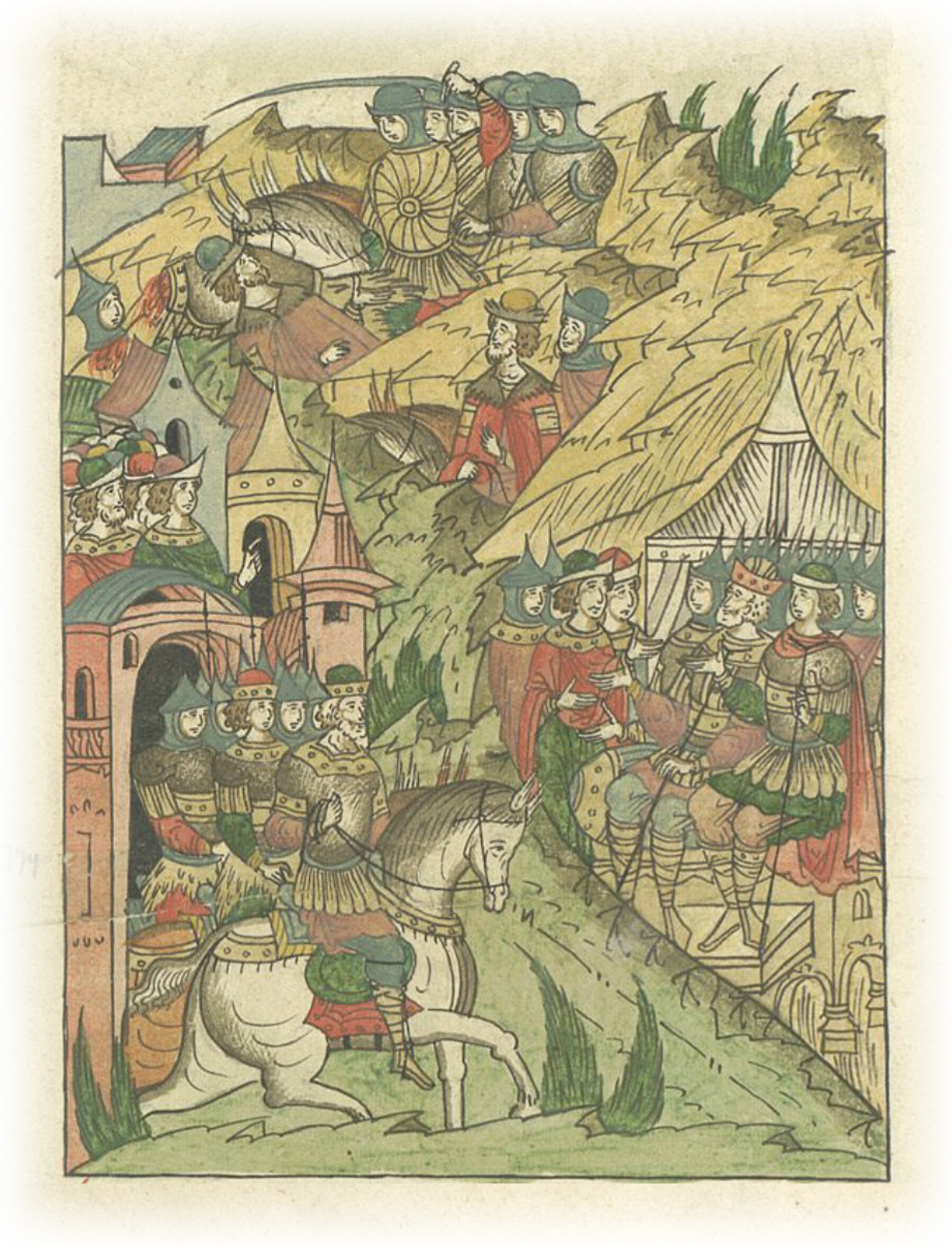 Языки говорят воеводам царя Ивана Васильевича, что магистр окопался большим рвом вокруг города Рындола, бьет из пушек и пищалей и приступает к Рындолу.