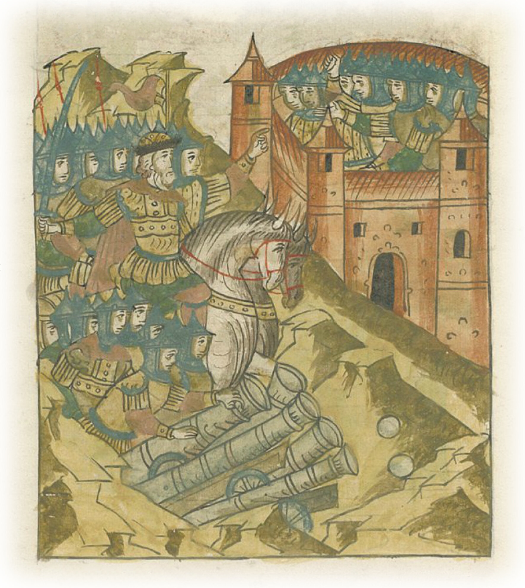 И тогда начали из города вопить и кричать, чтобы великий государь пожаловал, меч свой унял и бой повелел прекратить, а они хотят государю бить челом и город сдать. И великий государь вскоре повелел бой прекратить.