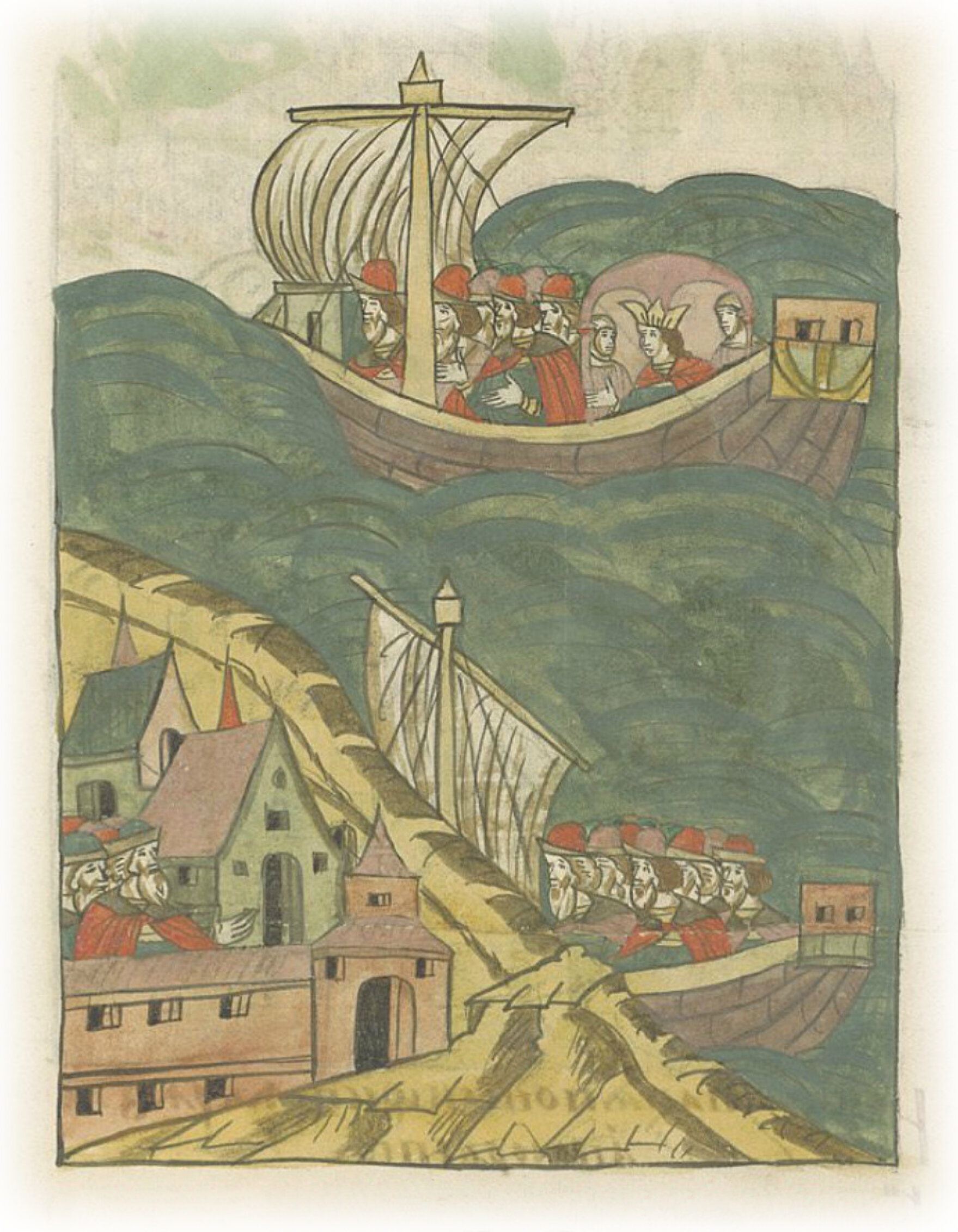 Приход царевны Софьи на Москву. В том же месяце в 21 день пришла царевна кораблем в Колывань, а носило их море 11 дней.