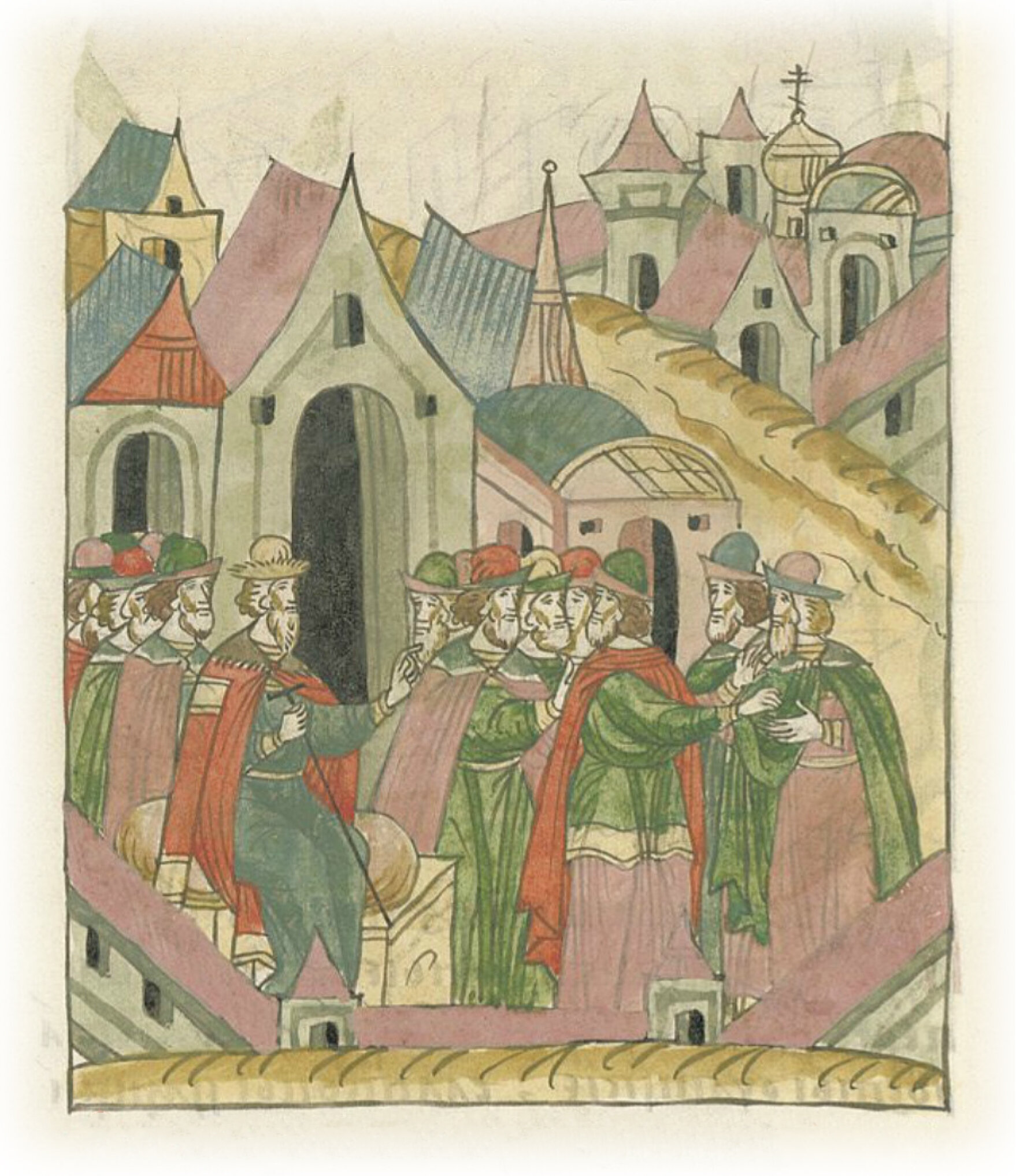 И велел князь великий Василия Ананьина, Богдана Есипова, Федора Исакова, Ивана Лошинского схватить; и взяли их дети боярские: Василья Онаньина, Ивана Товаркова – Богдан Русалка, Федора Исакова – Никита Беклемишев, Лощинского – Звенец.