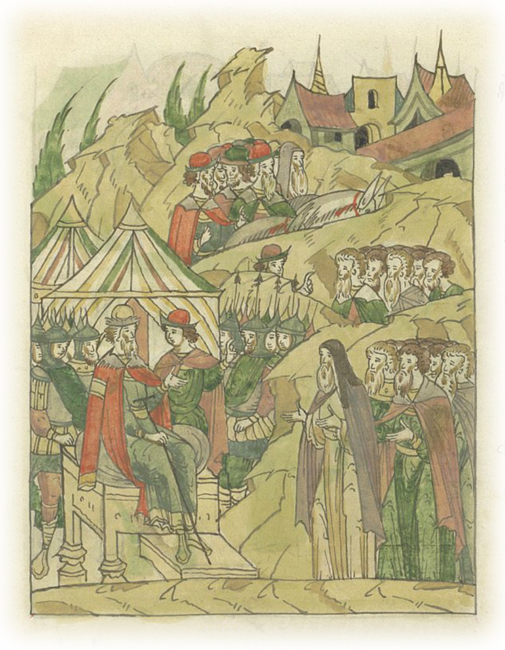 Ругодивские посадники Яким и Захар приезжают в Москву. Воеводы царя Ивана Васильевича Алексей Адашев и Иван Михайлов сообщают им, что государь пожалует их, если сдадут его воеводам помимо Ругодива Вышгород.