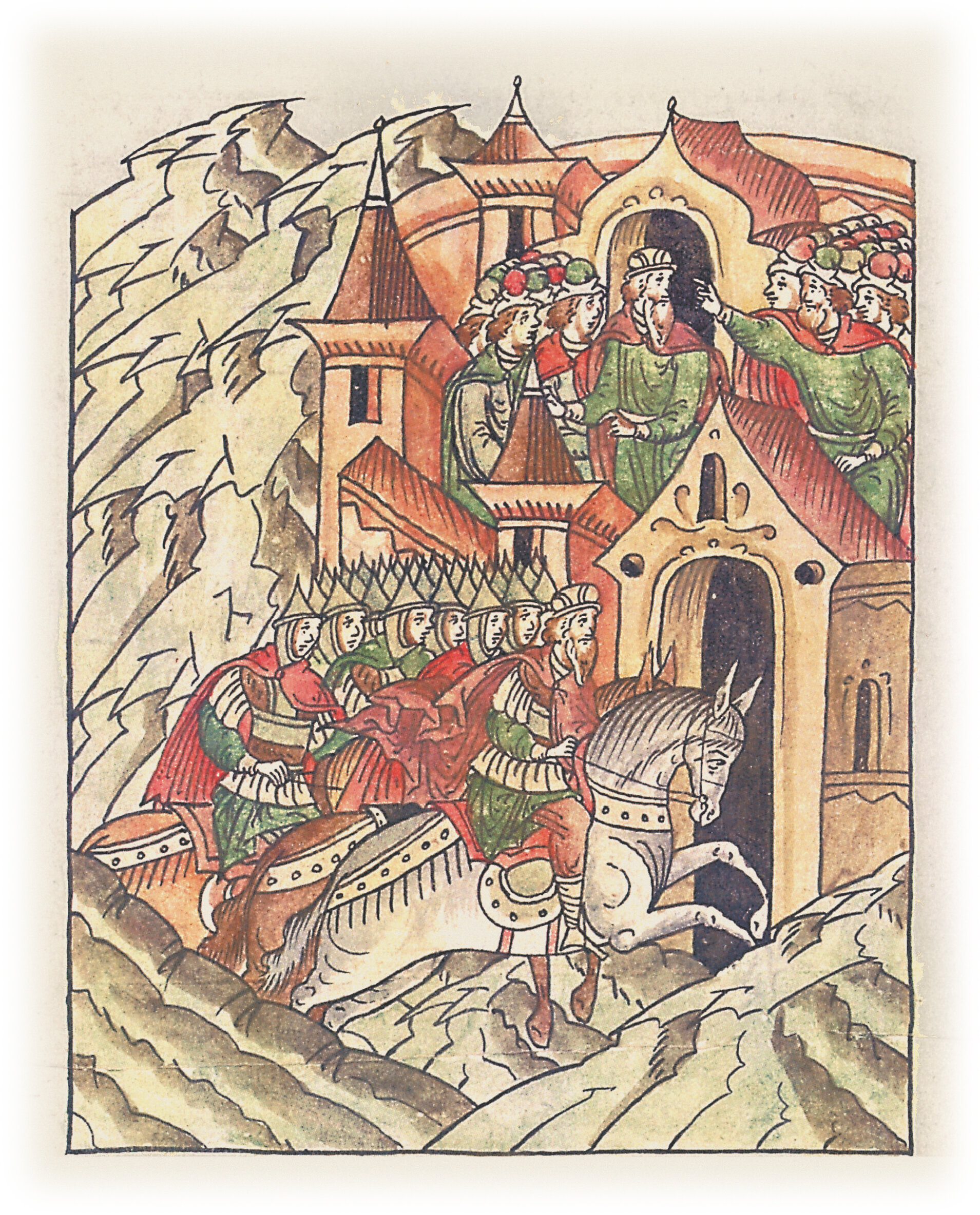 Ругодивские посадники Яким и Захар приезжают в Москву. Воеводы царя Ивана Васильевича Алексей Адашев и Иван Михайлов сообщают им, что государь пожалует их, если сдадут его воеводам помимо Ругодива Вышгород.