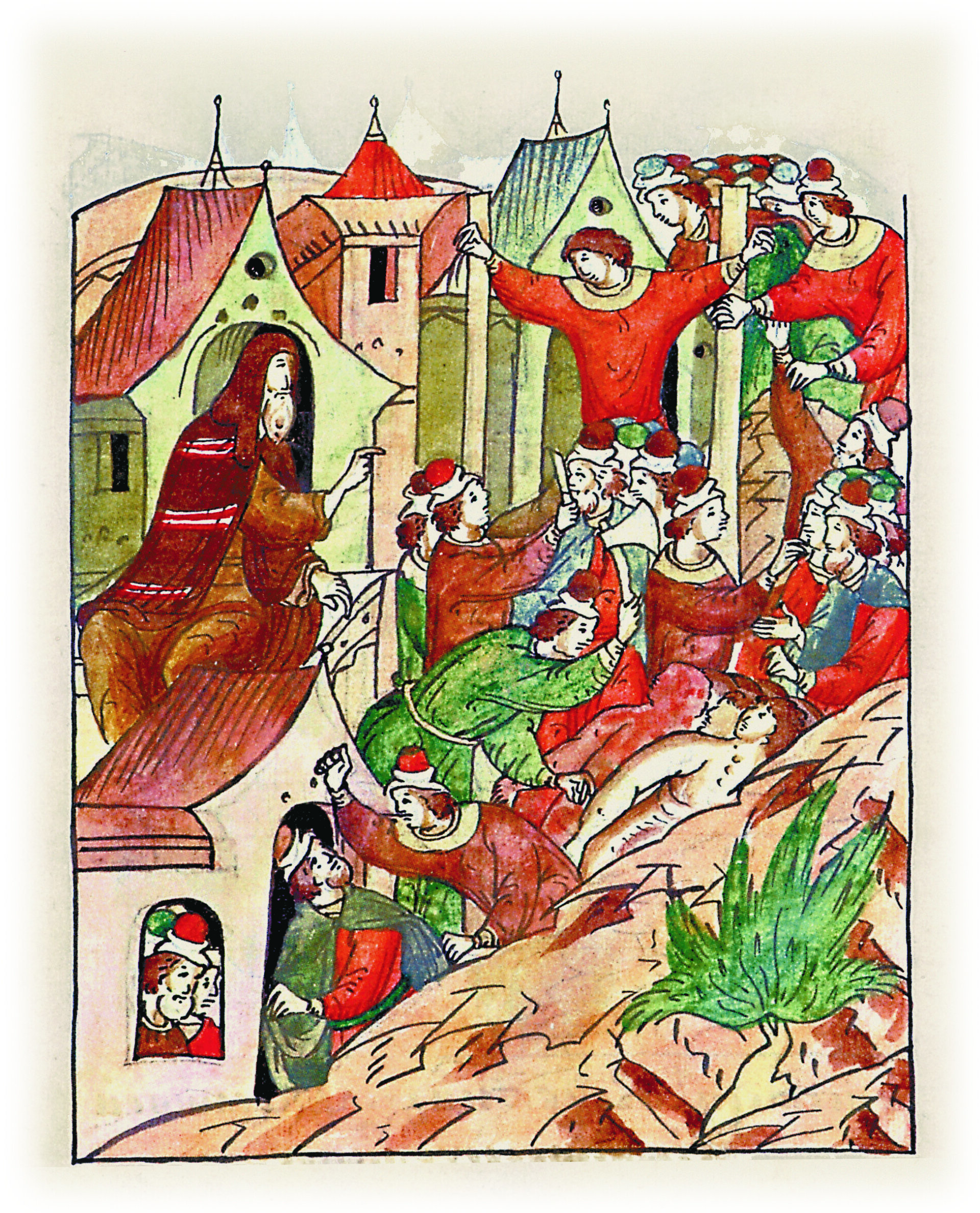 И так многих кого заточил, кого замучил, забирая имение их, другим же волосы на голове, и бороды, и глаза свечами пожег, кому руки и ноги отсек, кому язык и нос, и уши, и губы отрезал, иных же на стенах и на досках распинал, а кого на половины рассекал.
