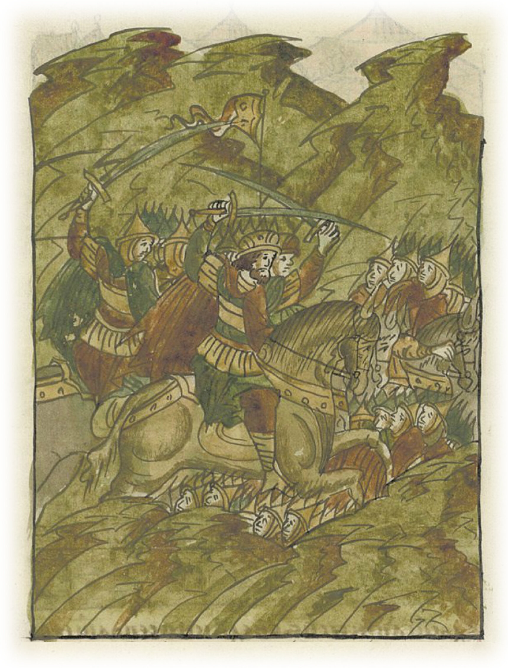 Воеводы царя Ивана Васильевича, разделившись, идут в погоню за царем Емгурчеем.