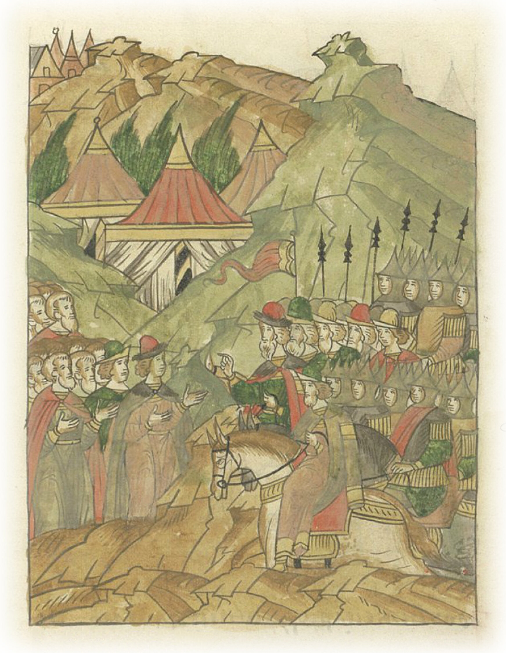 Языки говорят воеводам царя Ивана Васильевича, что магистр окопался большим рвом вокруг города Рындола, бьет из пушек и пищалей и приступает к Рындолу.