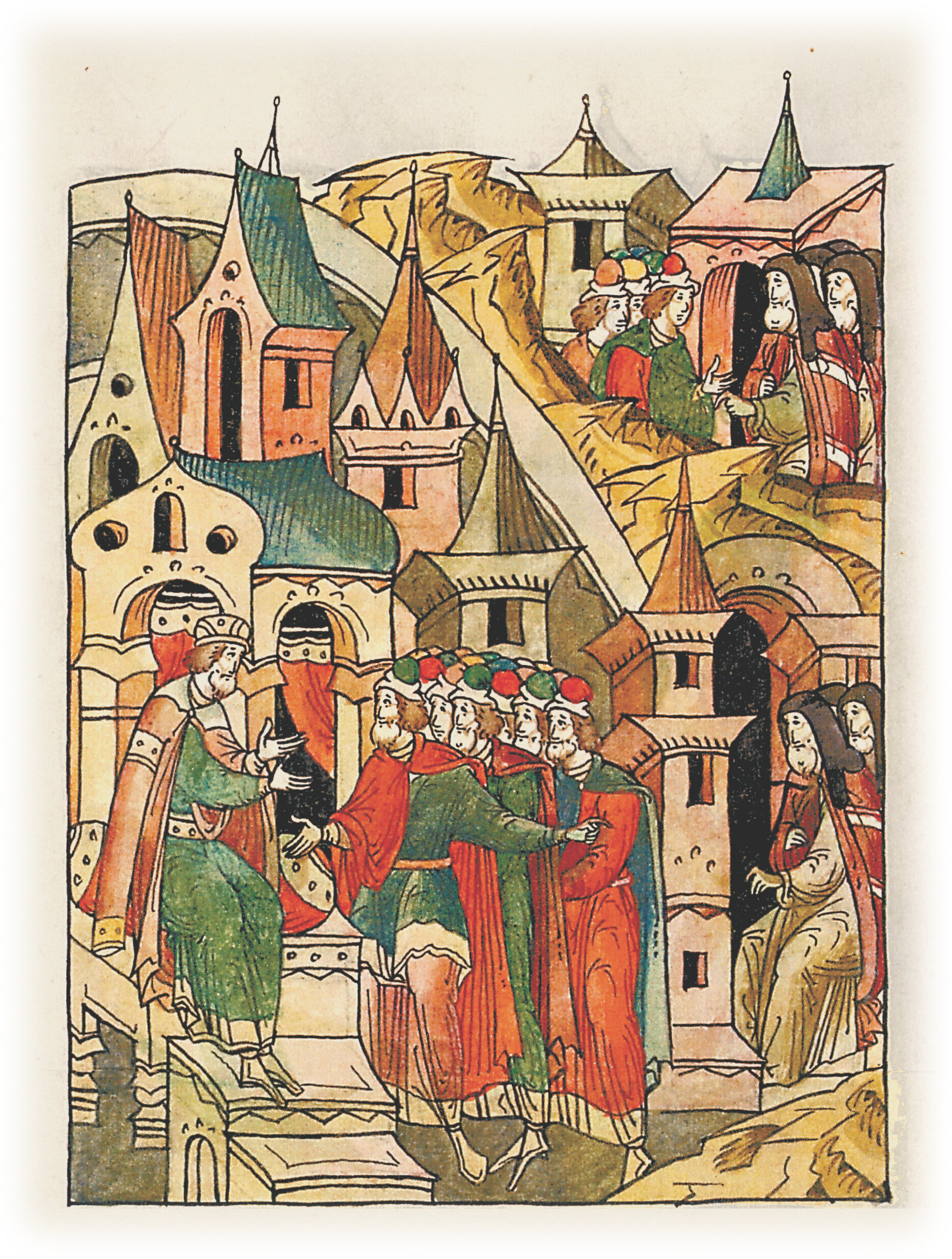 Ругодивские посадники Яким и Захар приезжают в Москву. Воеводы царя Ивана Васильевича Алексей Адашев и Иван Михайлов сообщают им, что государь пожалует их, если сдадут его воеводам помимо Ругодива Вышгород.
