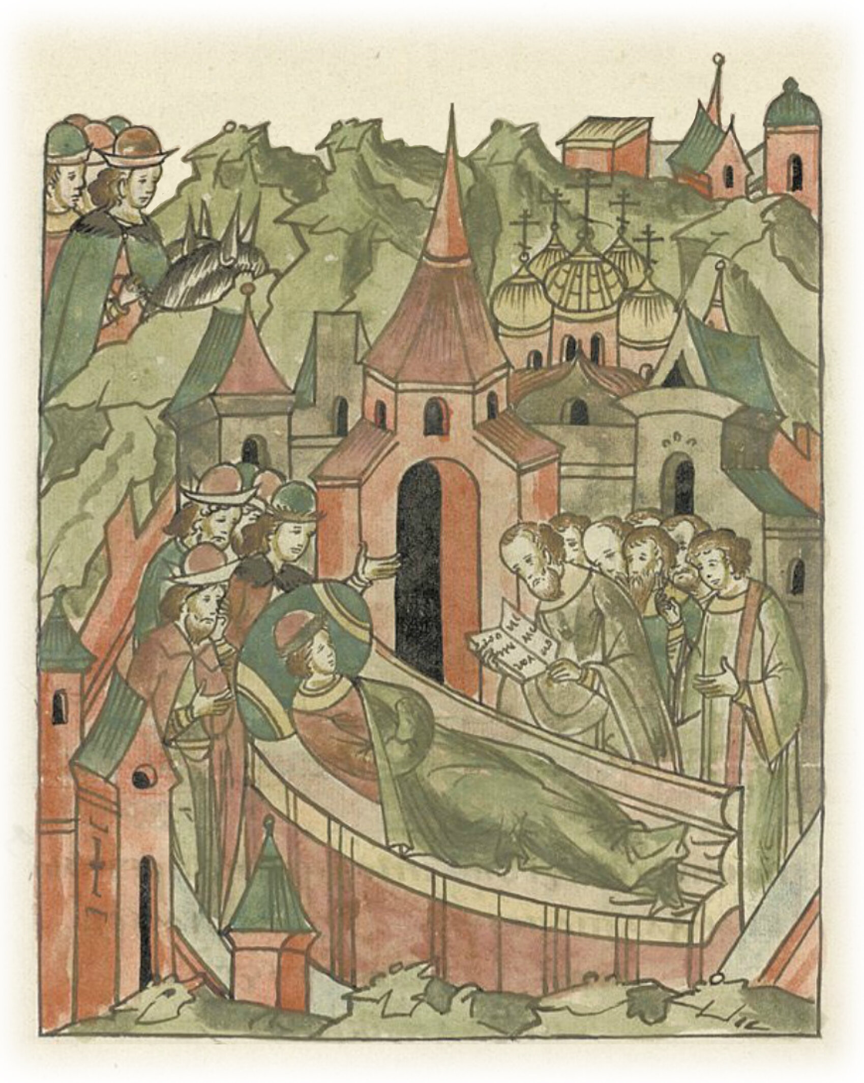 И когда он еще не дошел до княжества, в то время скончался князь Михалко, сын Юрия Долгорукого, внук Владимира Мономаха, месяца июня в 20 день, на память святого Мефодия,