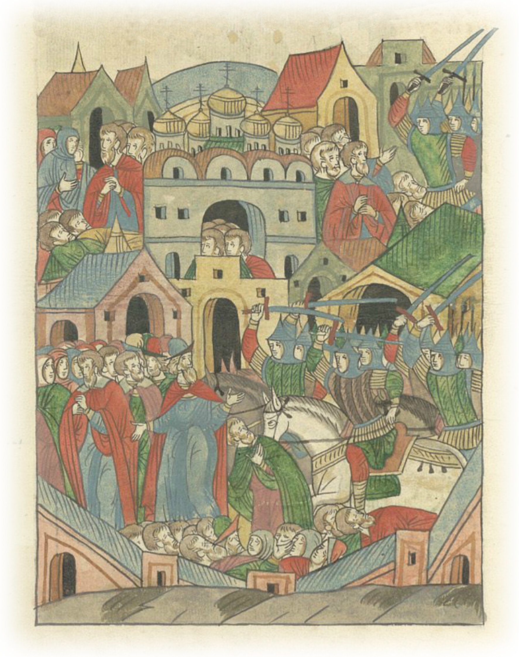 Жестокая сеча татарами московских горожан.