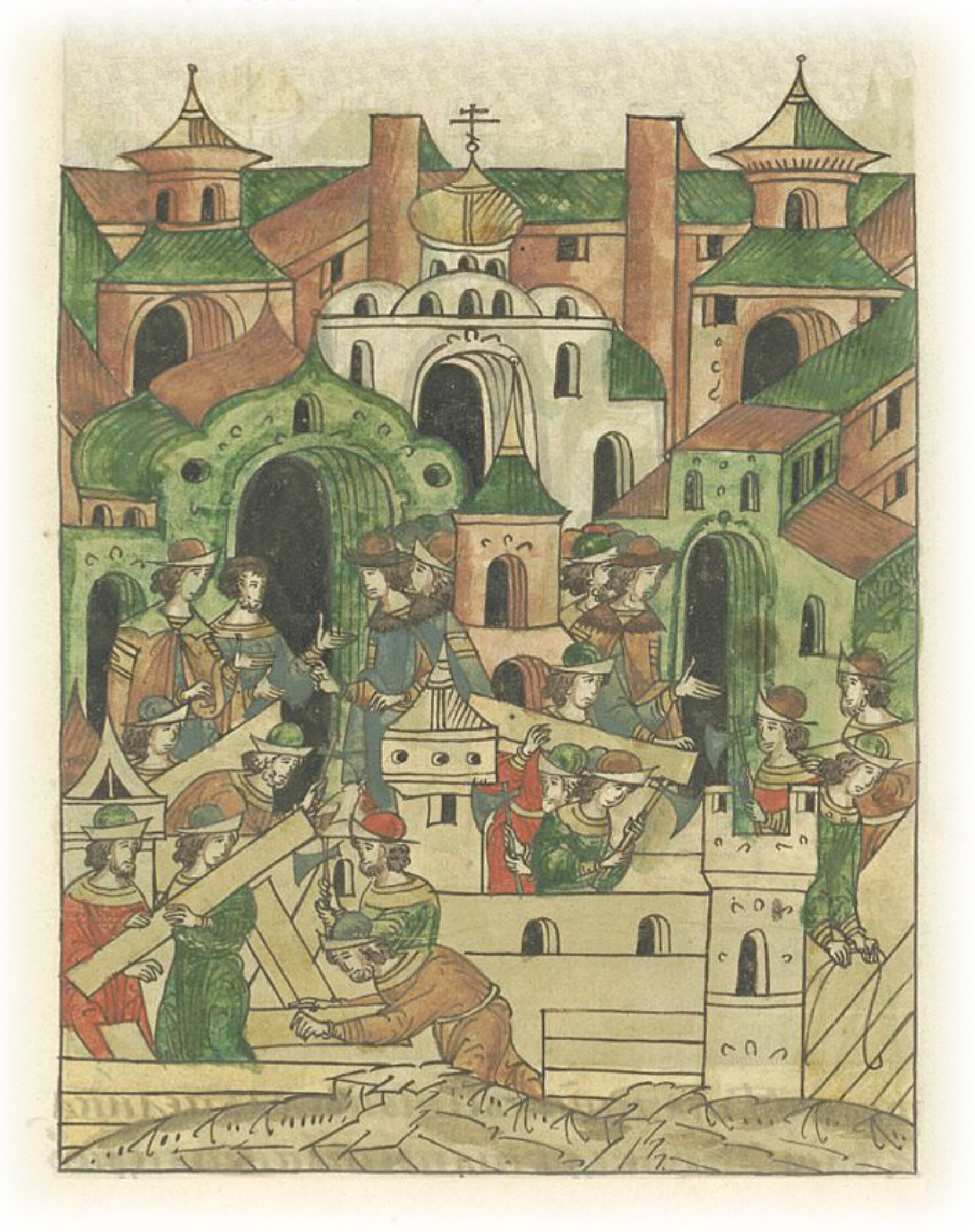 Великий князь Михаил Александрович Тверской велит разрушить старую стену города Твери и срубить вместо нее новую из деревянных брусьев.
