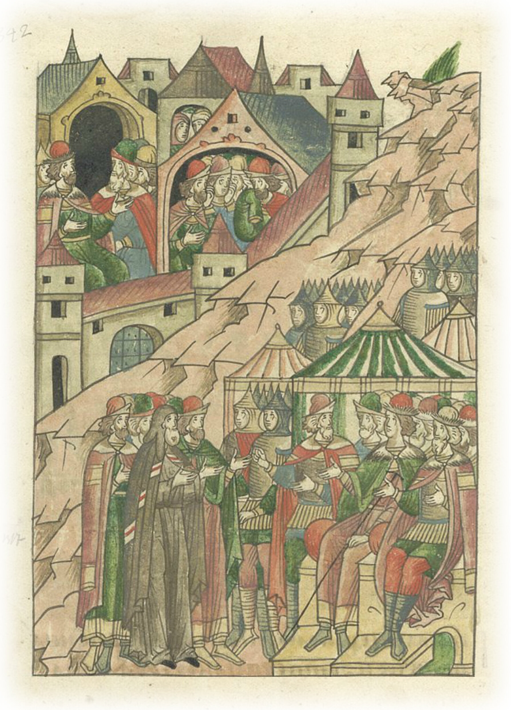 Он же, увидев его покорность, не захотел разорения городу и пролития крови христиан