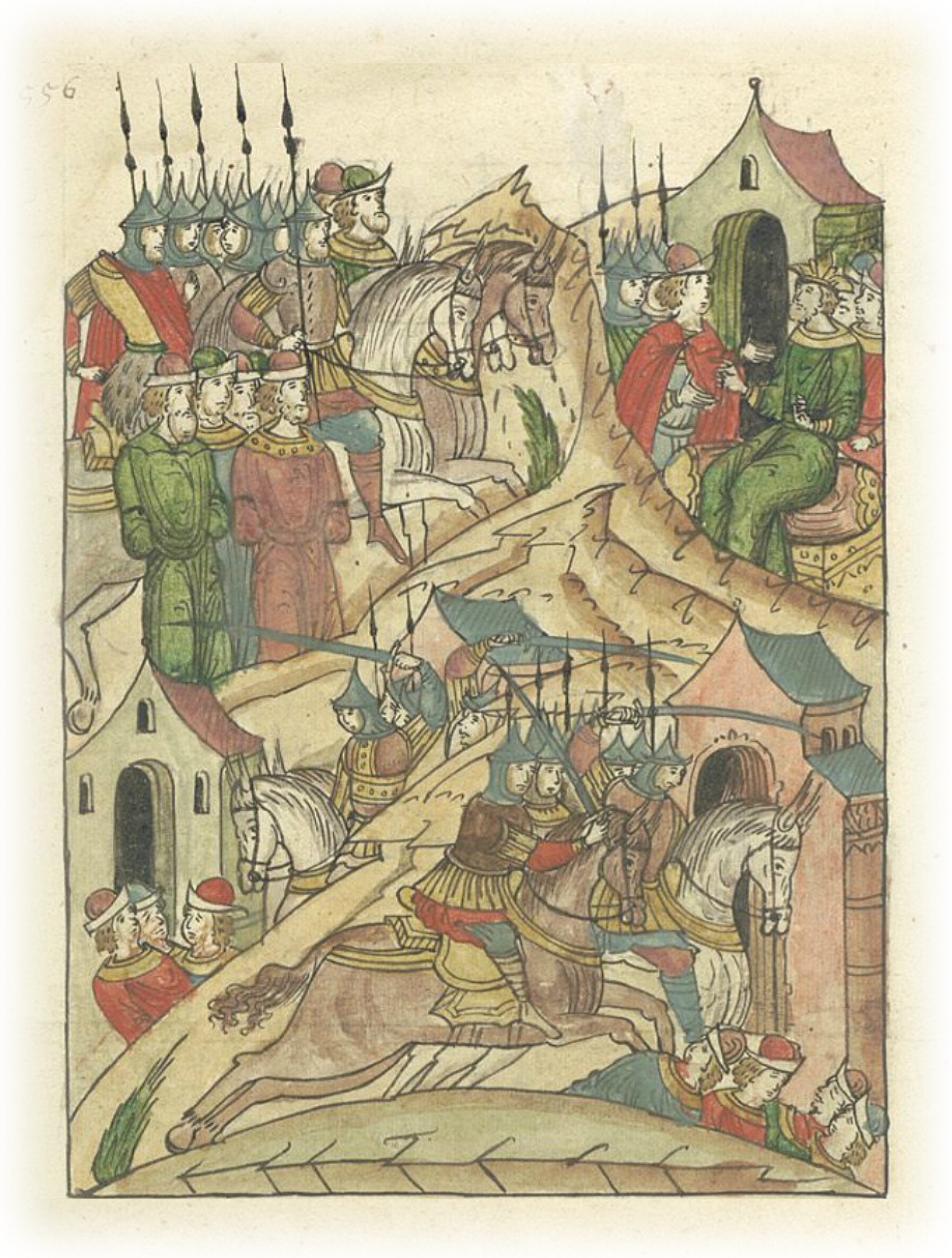 Языки говорят воеводам царя Ивана Васильевича, что магистр окопался большим рвом вокруг города Рындола, бьет из пушек и пищалей и приступает к Рындолу.