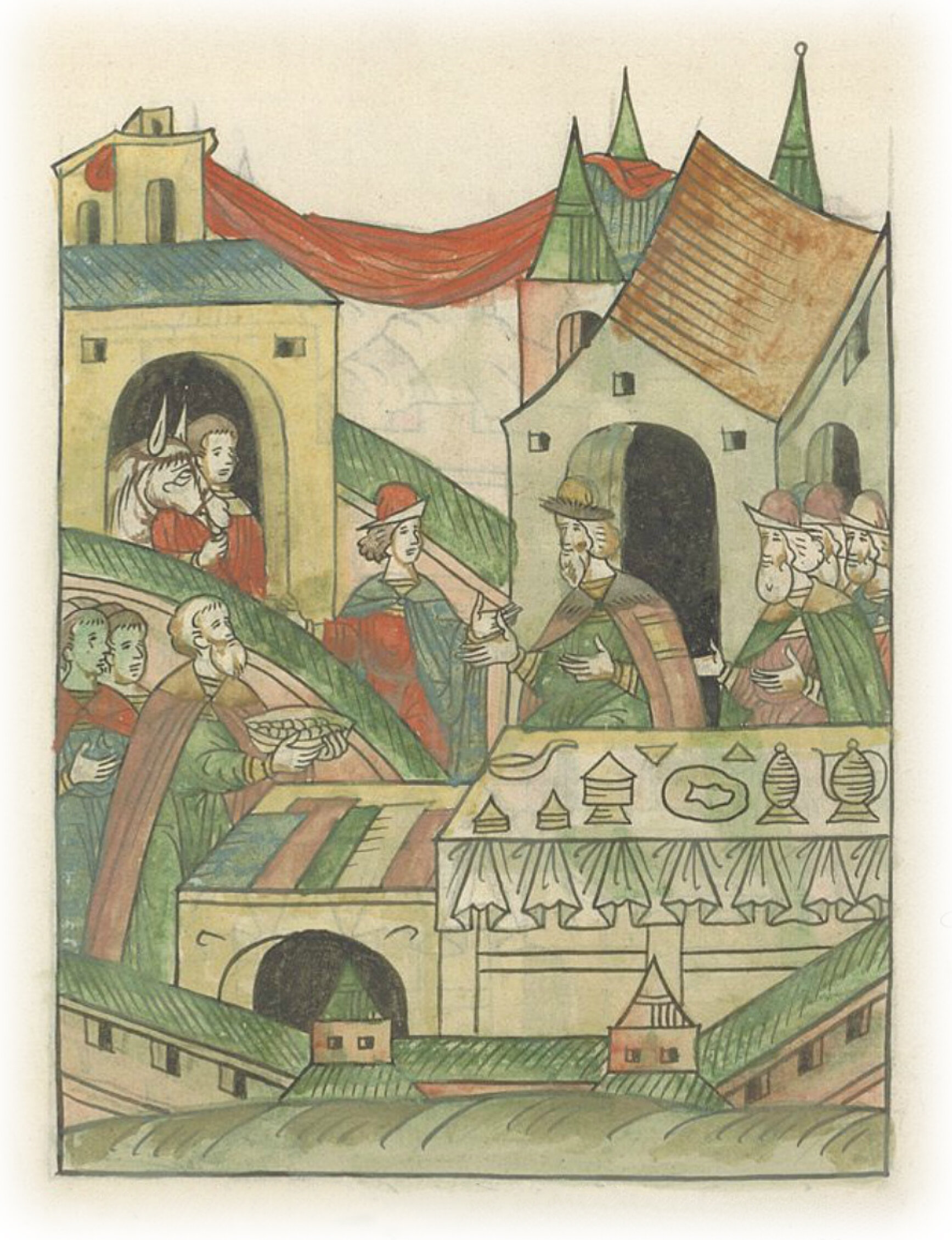 Ругодивские посадники Яким и Захар приезжают в Москву. Воеводы царя Ивана Васильевича Алексей Адашев и Иван Михайлов сообщают им, что государь пожалует их, если сдадут его воеводам помимо Ругодива Вышгород.