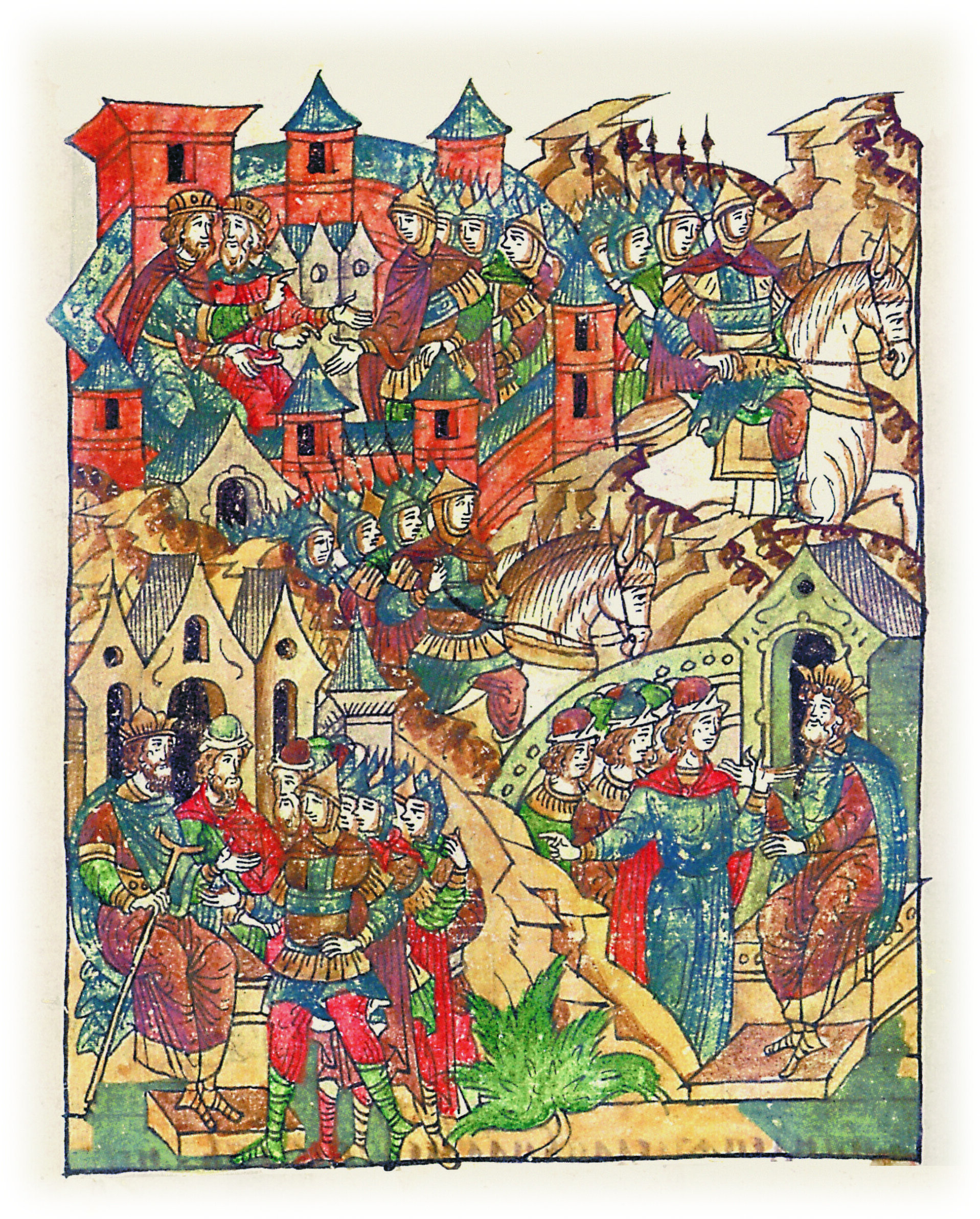 И так отпустили от Киева многое воинство - и чехов, и поляков, и венгров к королям их со многою честью и с дарами; так как великому князю Киевскому Изяславу Мстиславичу король Венгерский был зятем, а Чешский – сватом, и так между собой многую любовь имели.
