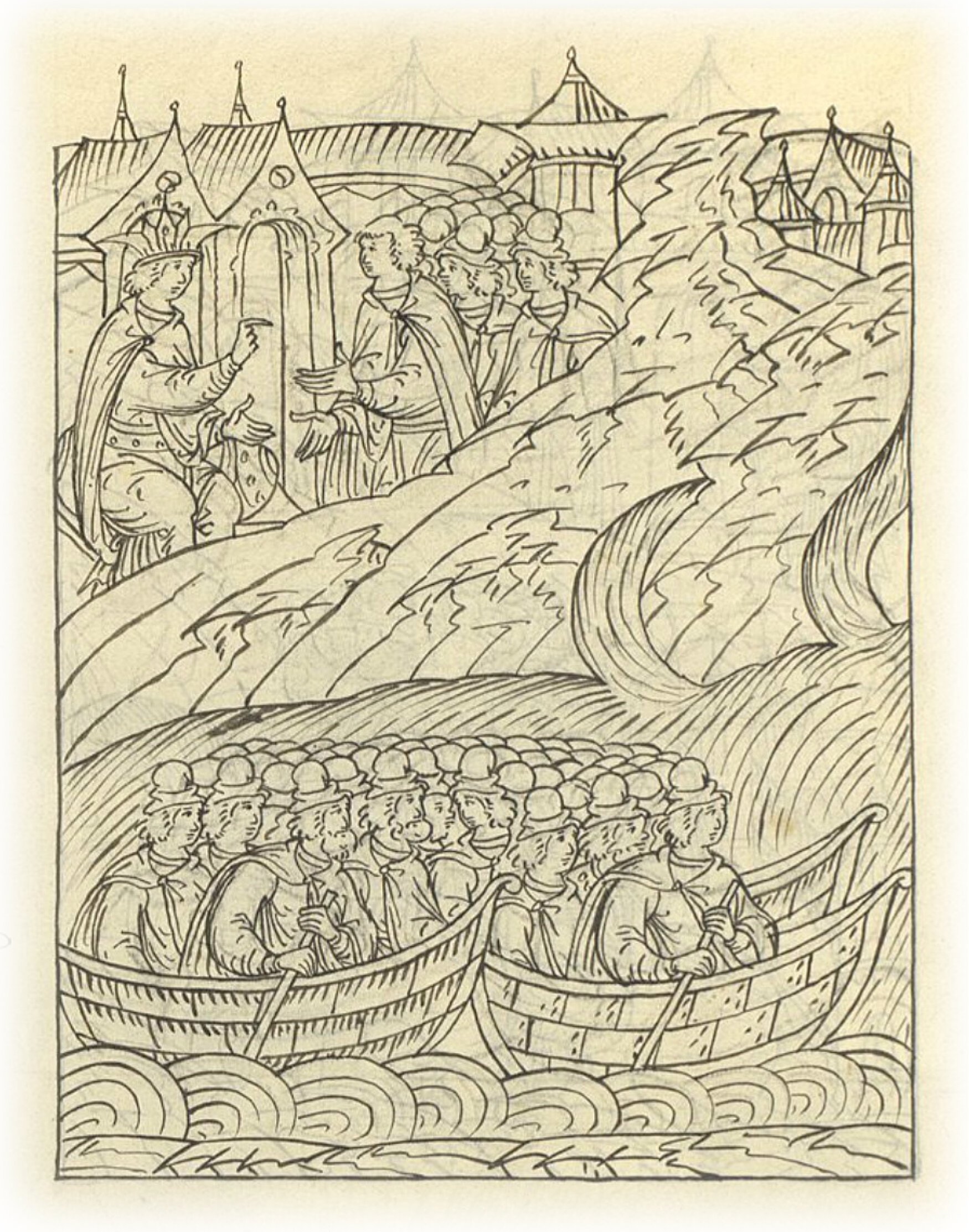 Ругодивские посадники Яким и Захар приезжают в Москву. Воеводы царя Ивана Васильевича Алексей Адашев и Иван Михайлов сообщают им, что государь пожалует их, если сдадут его воеводам помимо Ругодива Вышгород.