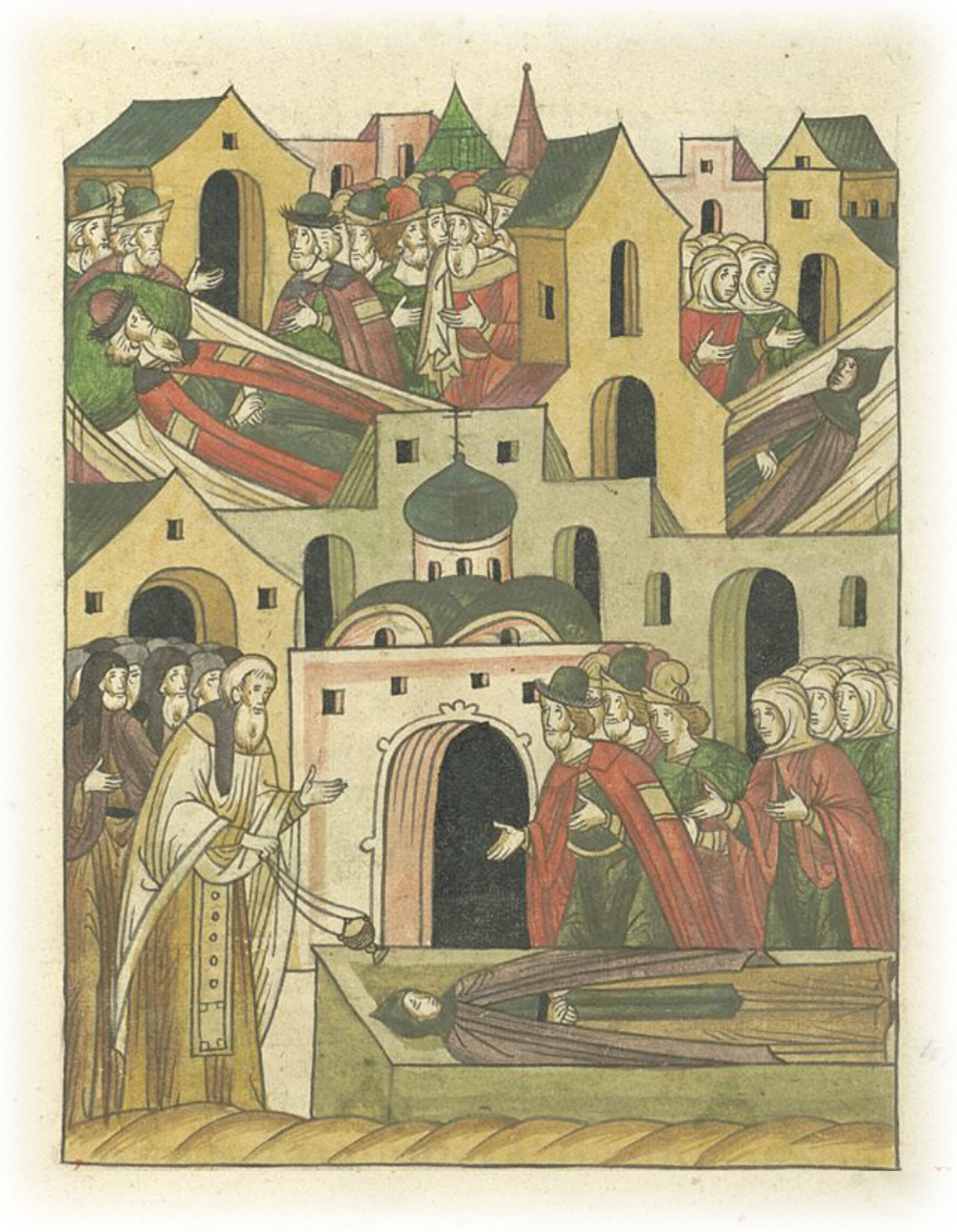 И потом, (когда) преставился князь Владимир Александрович, великий страх охватил всех. В том же году преставилась великая княгиня Александра Иванова Ивановича, жившая в черницах и в схиме, в монашеском чине имя ей было наречено Мария, и похоронена была она в монастыре в пределе церкви святого Спаса в Москве.